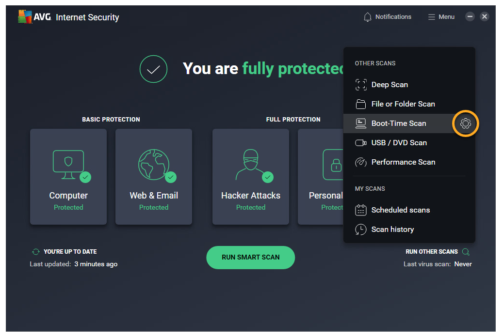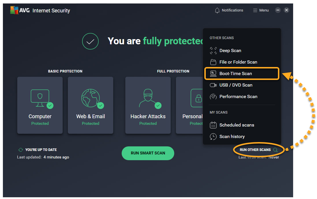 - Otevřete AVG Antivirus a vyberte Spustit další testy ▸ Test po restartu.