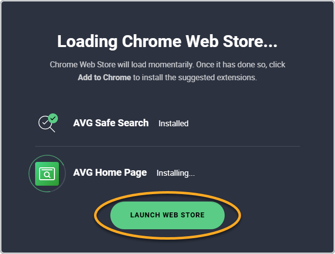 4. Na obrazovce, která se objeví, klikněte na Spustit internetový obchod, abyste přešli na stránku Domovská stránka AVG v internetovém obchodě Google.