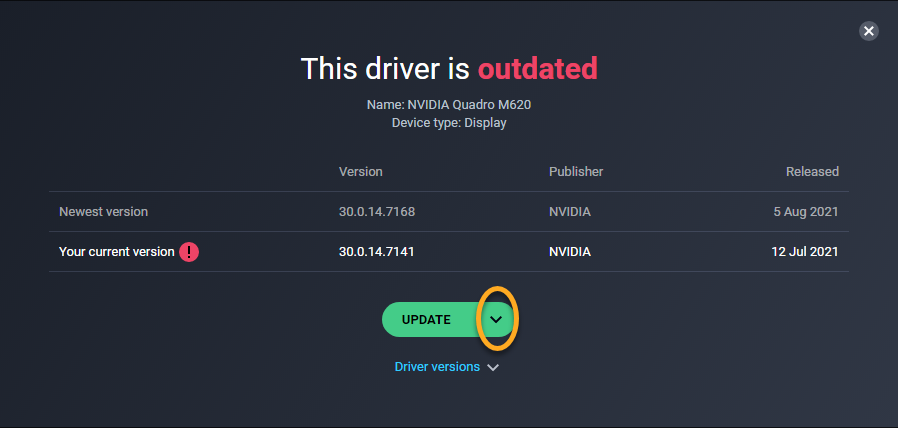 - V pravém dolním rohu obrazovky klikněte na Verze ovladačů.