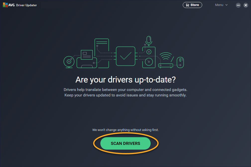 AVG Driver Updater při instalaci a prvotním nastavení otestuje počítač a zeptá se vás, jestli chcete aktualizovat zastaralé ovladače. Pokud chcete v počítači znovu vyhledat zastaralé ovladače, řiďte se postupem níže: