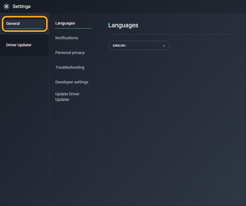 - Nastavení pro vývojáře: Nastavte pokročilá nastavení, která určují, jak se má AVG Driver Updater chovat, když je zavřený. Když tato nastavení vypnete, AVG Driver Updater nemusí fungovat správně.