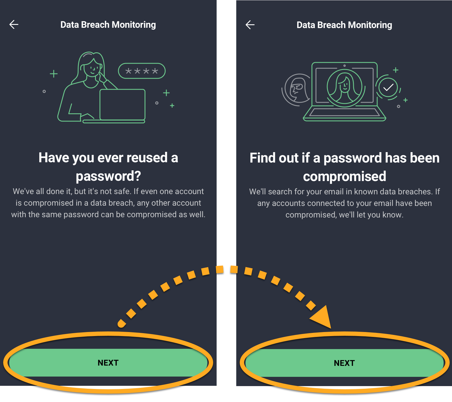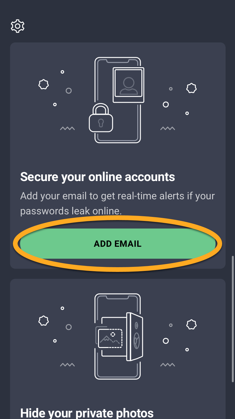 Pokud máte AVG Mobile Security Pro, můžete pomocí Hlídání úniků dat sledovat několik e-mailových adres. Pokud chcete přidat další e-mailovou adresu, klepněte na Další informace ▸ Otestovat nový e-mail a postupujte podle pokynů výše, počínaje krokem 4.