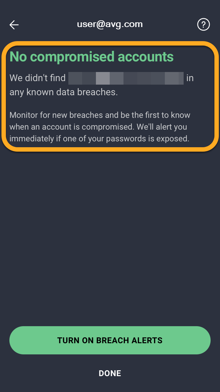 - Žádné účty s ohroženým zabezpečením: Nenašli jsme žádné úniky dat související s vašimi online účty.