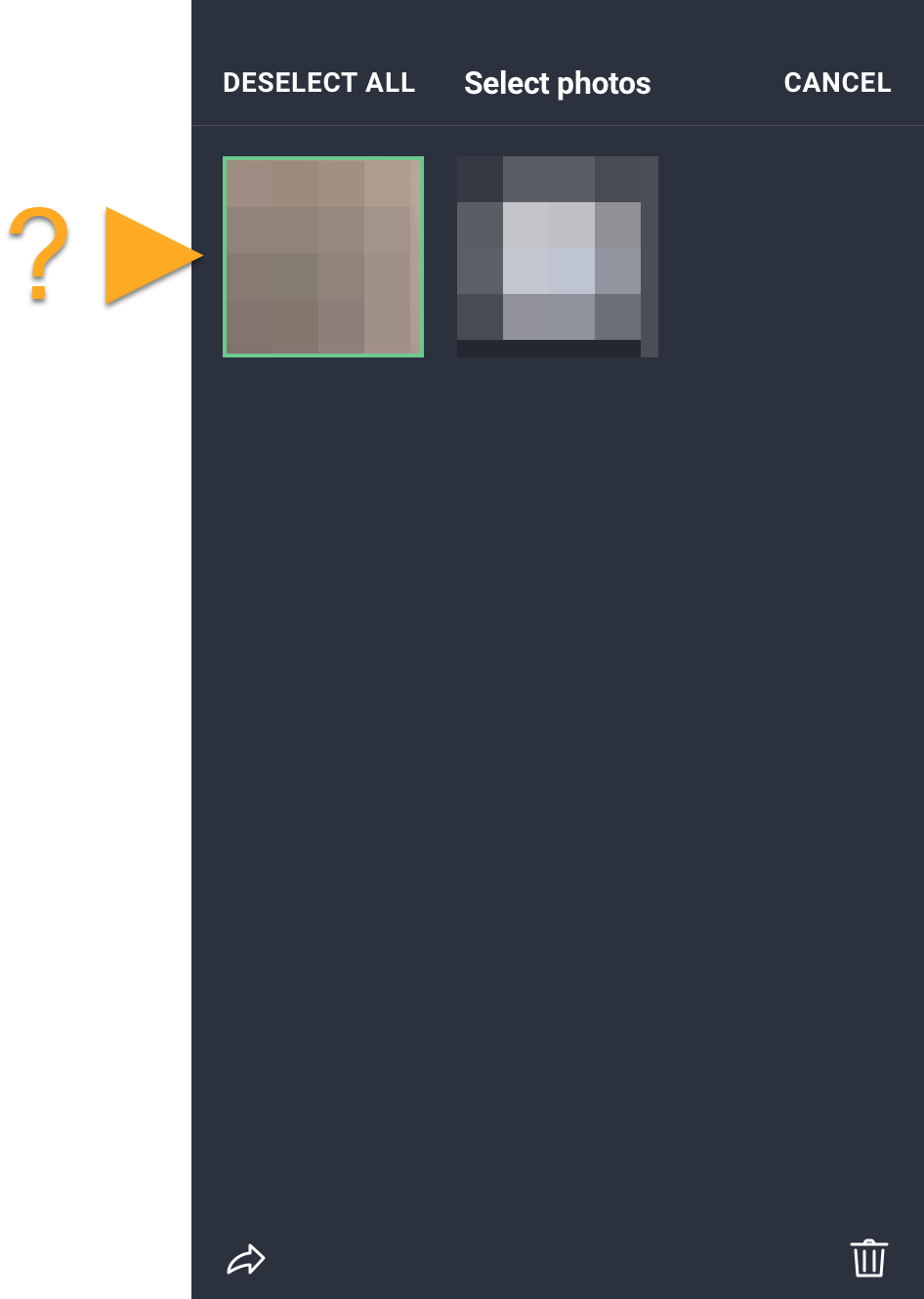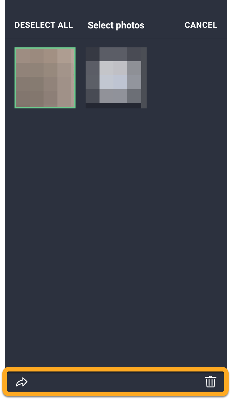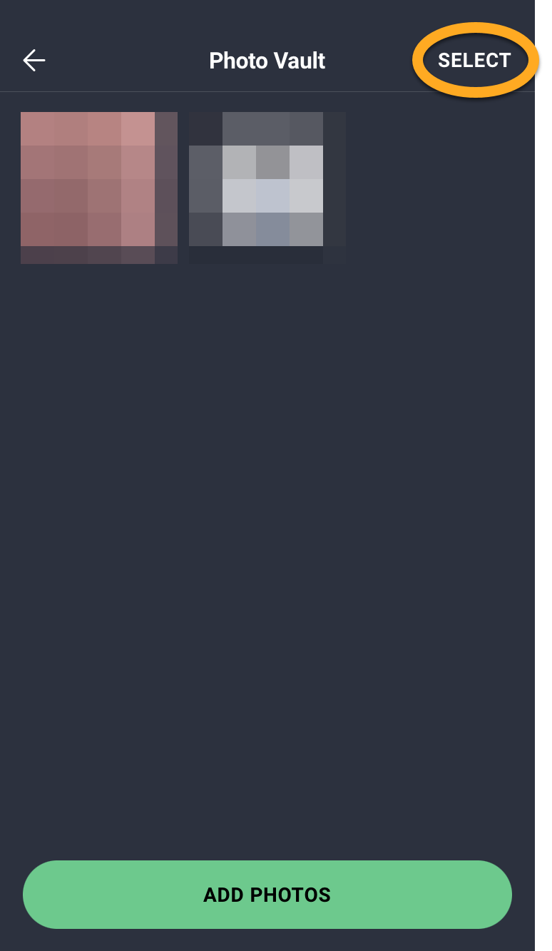 - Klepněte na fotografie, které chcete sdílet nebo odebrat z trezoru. Kolem vybraných fotografií se zobrazí zelené ohraničení.