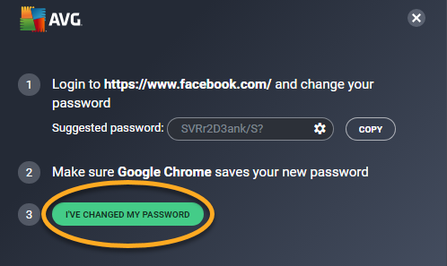 - V generátoru hesel AVG klikněte na možnost Heslo mám změněné a synchronizujte provedené změny.