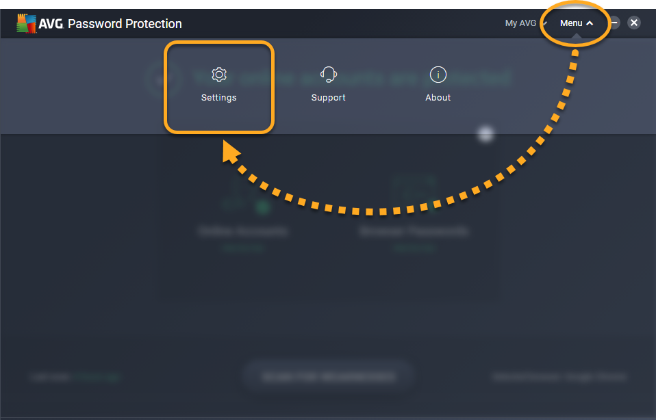 - Otevřete AVG Password Protection a zvolte možnosti Menu ▸ Nastavení.