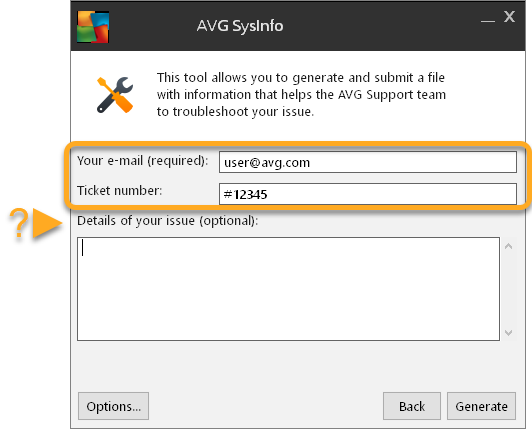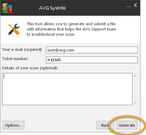 Der AVG-Kundendienst prüft nicht, ob neue Support-Dateien eingesandt wurden, informieren Sie also den AVG-Kundendienst über das Formular für technischen Support, bevor Sie eine Support-Datei über SysInfo schicken.