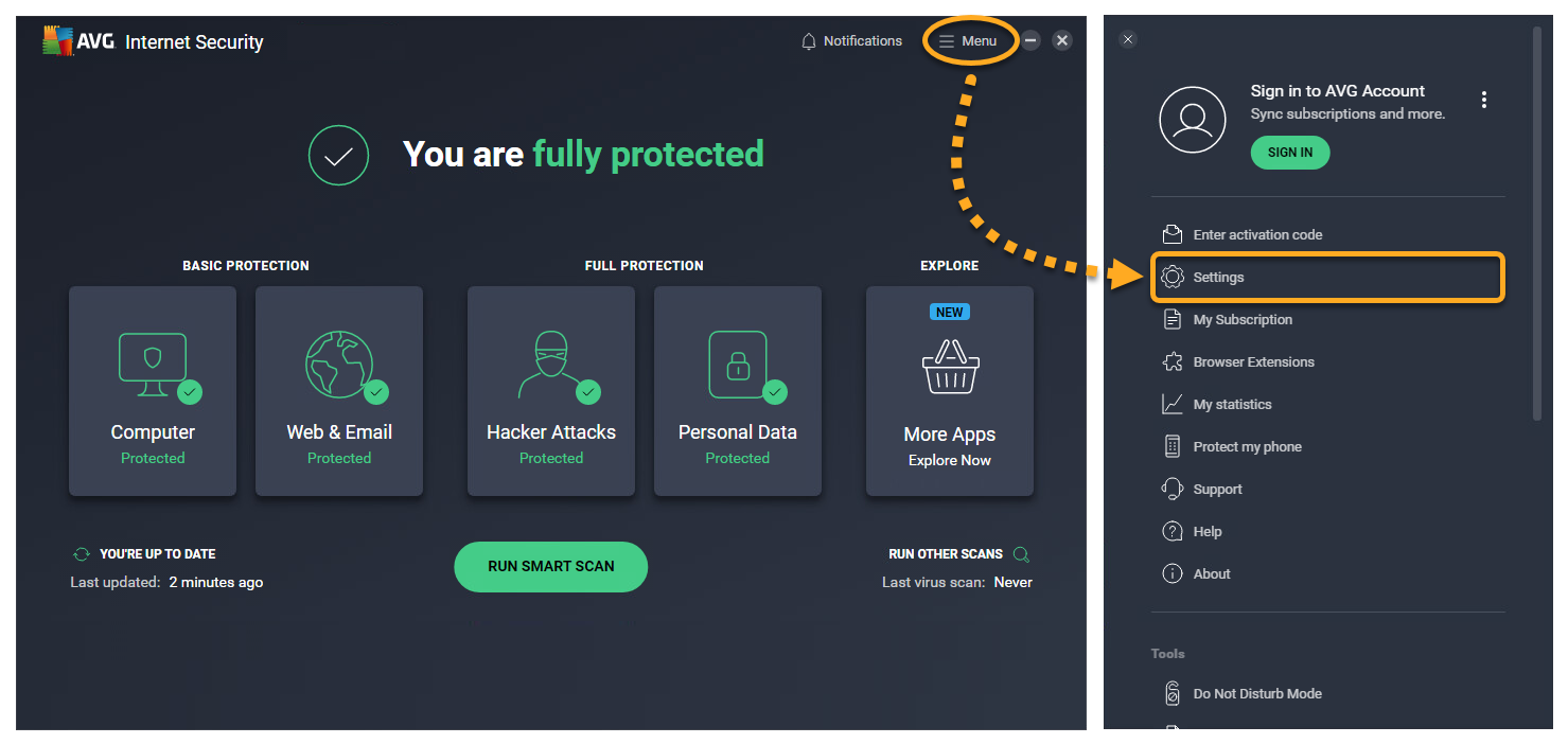 - Öffnen Sie AVG AntiVirus und gehen Sie zu