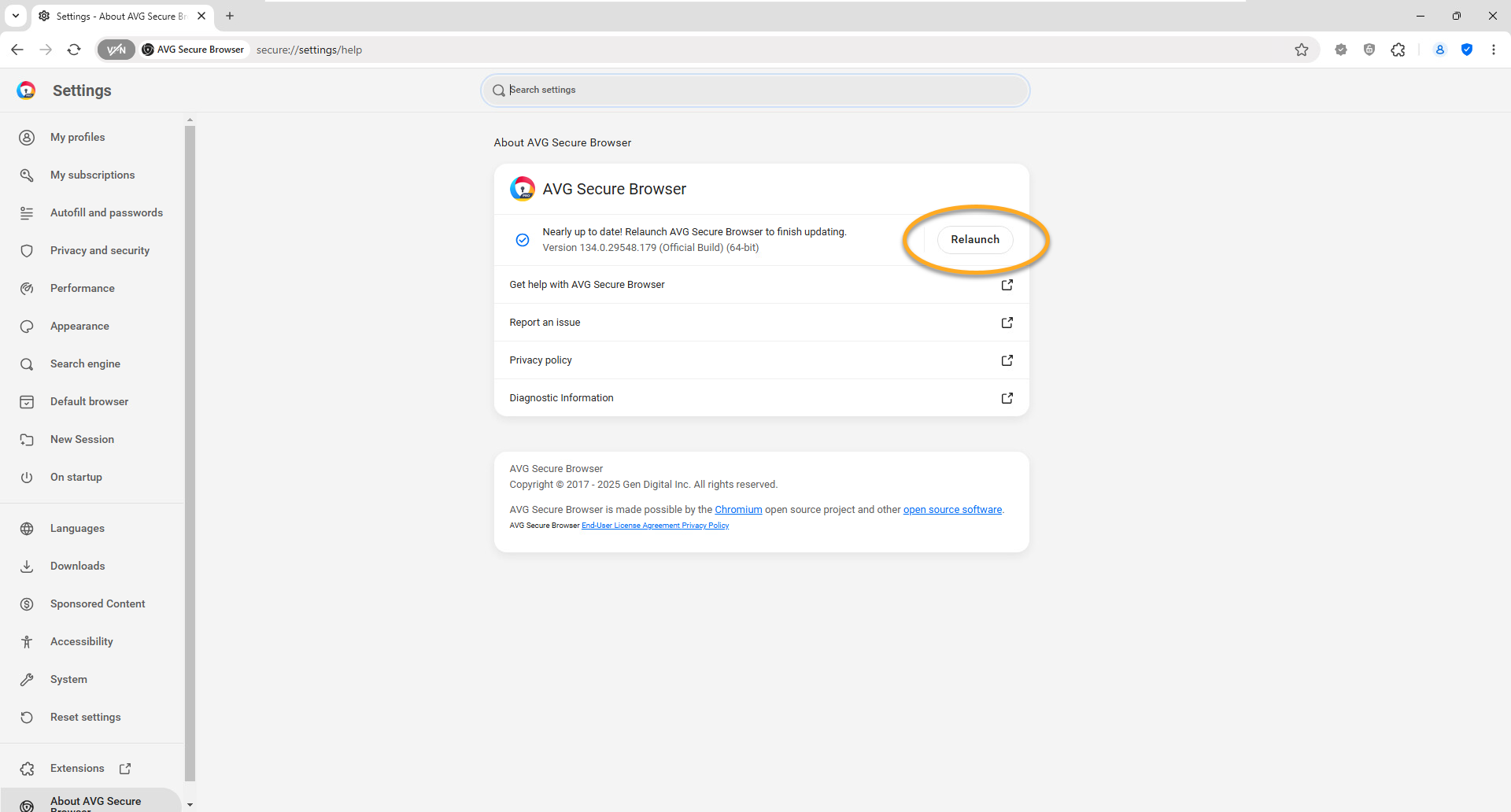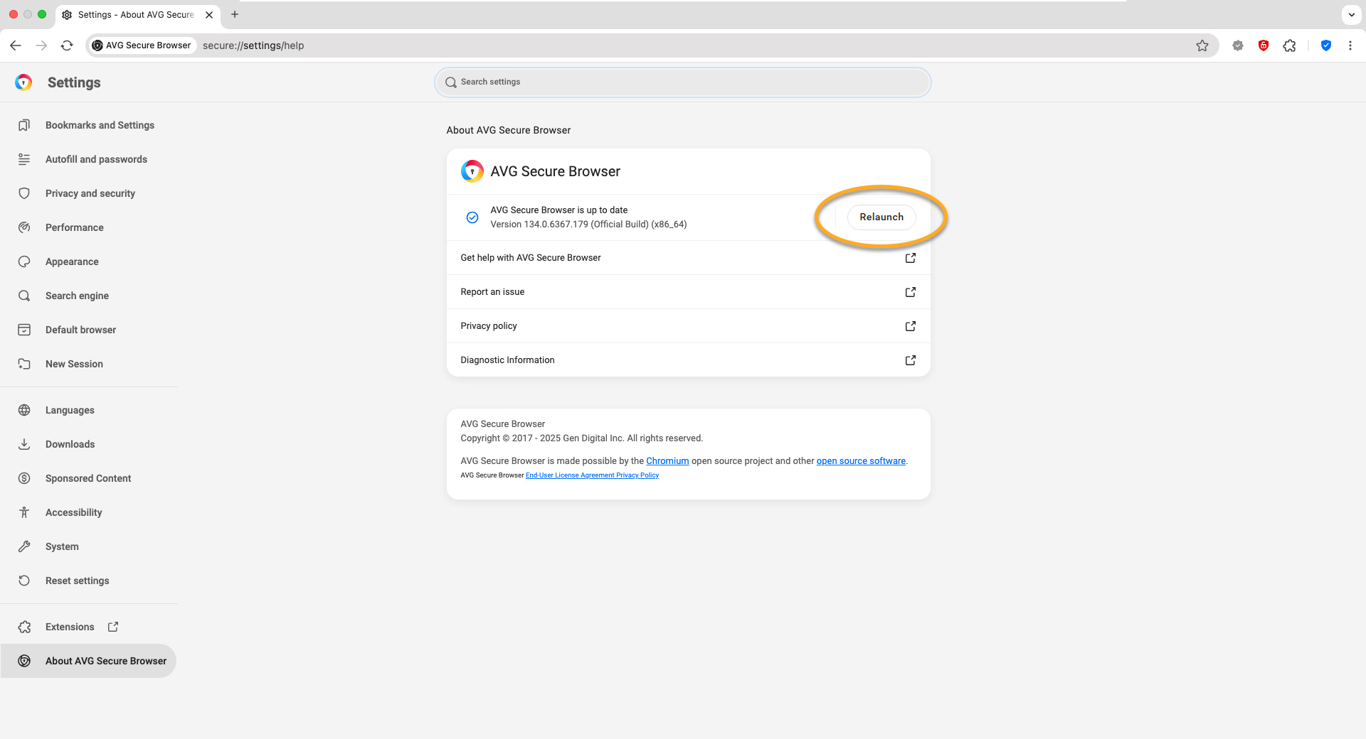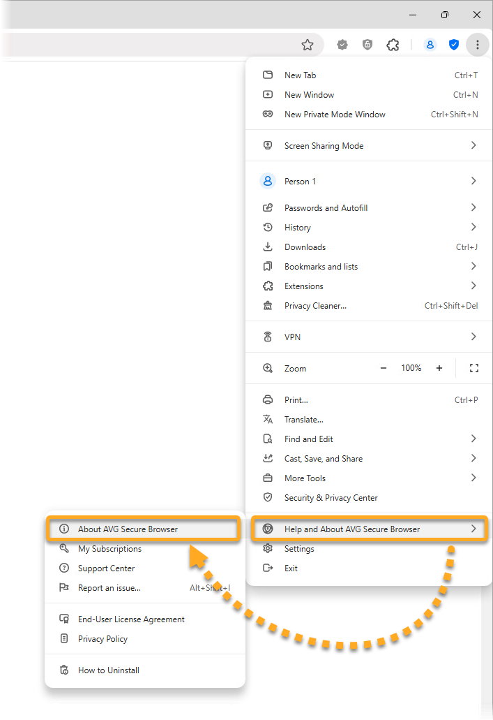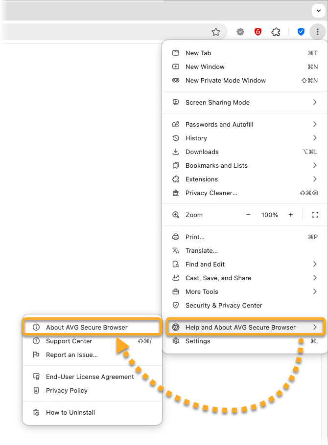 AVG Secure Browser automatically updates to enhance your security and privacy online. You can also check if your browser is up to date and manually update it by following the steps below: