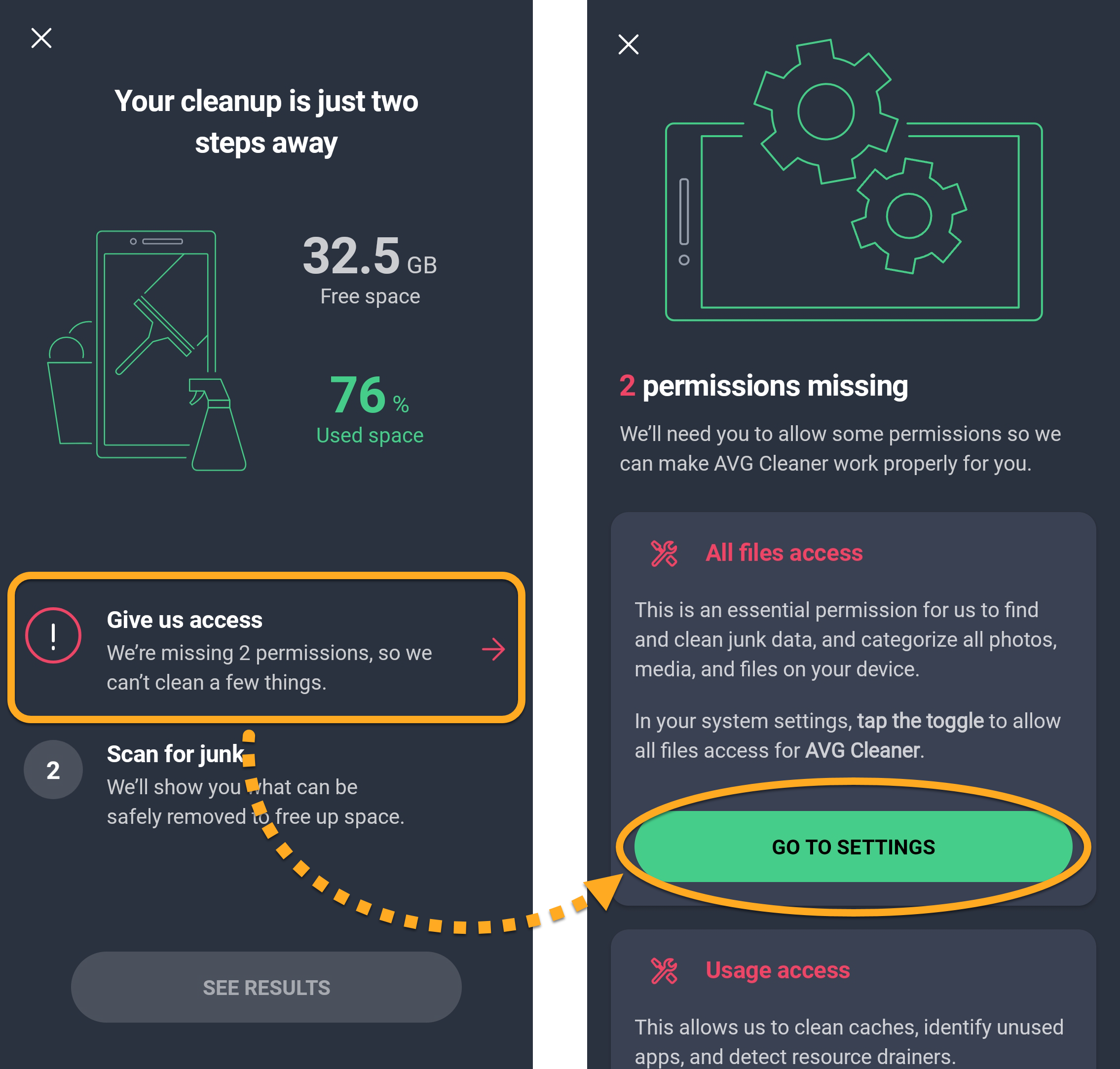 - Tap Give us access ▸ Go to settings, then follow the on-screen instructions to provide all required access in your device settings.