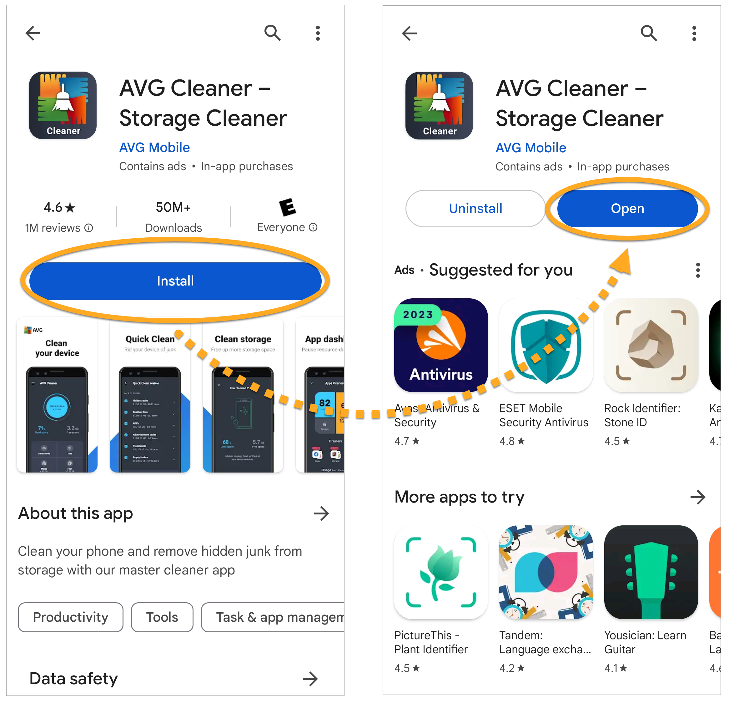 AVG Cleaner is now installed on your device.