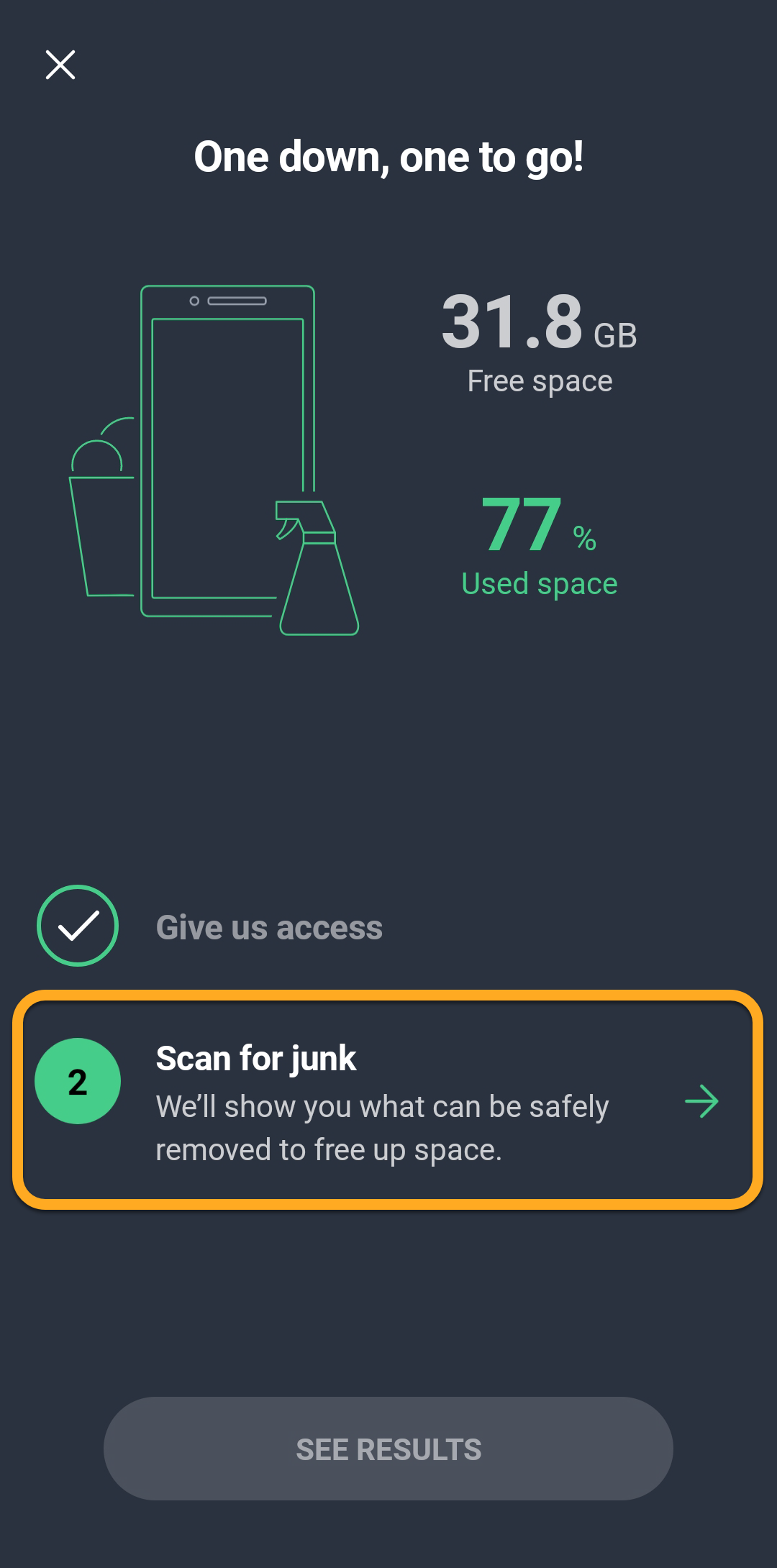- Tap Scan for junk.