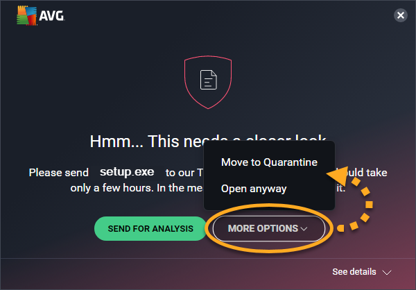 - Open anyway (not recommended): Immediately run the file without waiting for AVG Threat Labs to verify whether or not the file is safe.
