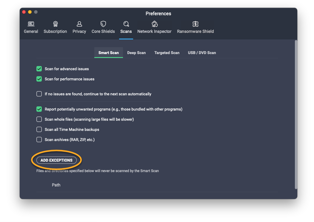 - Type of scan: Targeted Scan, Deep Scan, or Smart Scan.