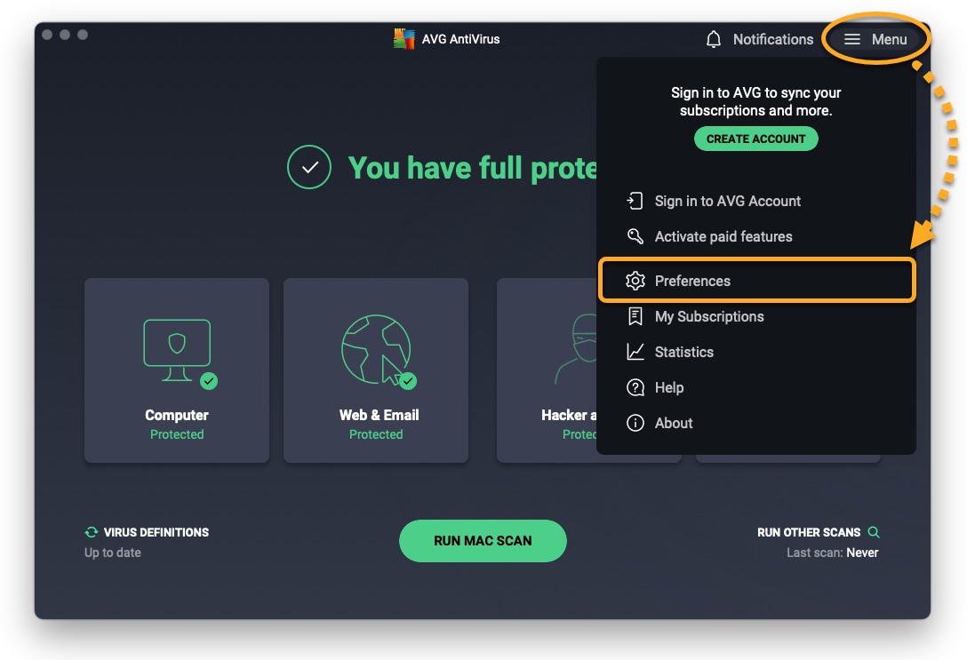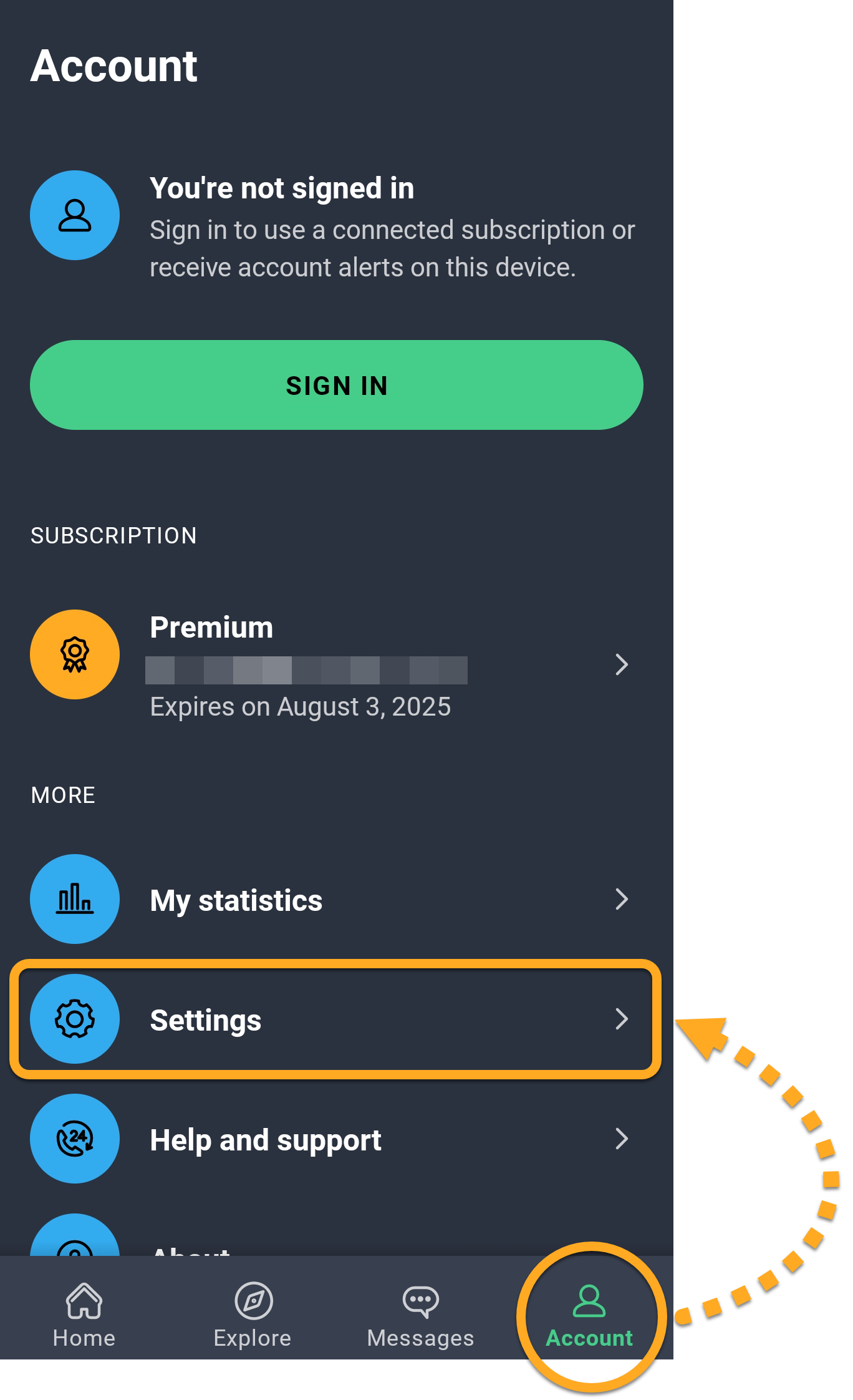 - Open AVG AntiVirus and tap Account ▸ Settings.