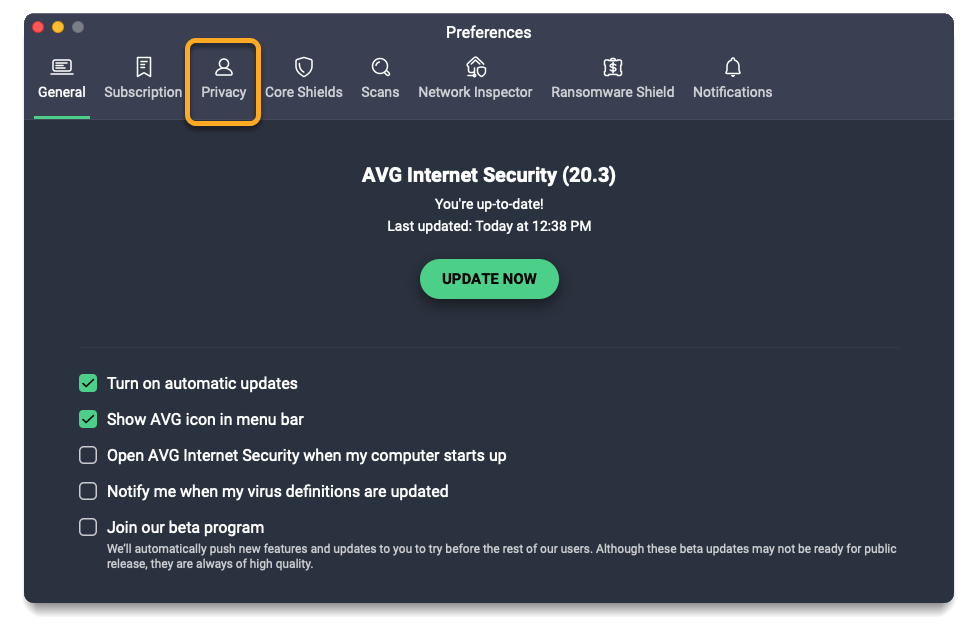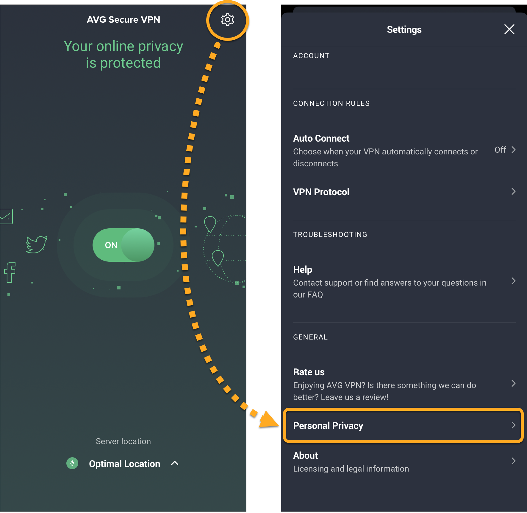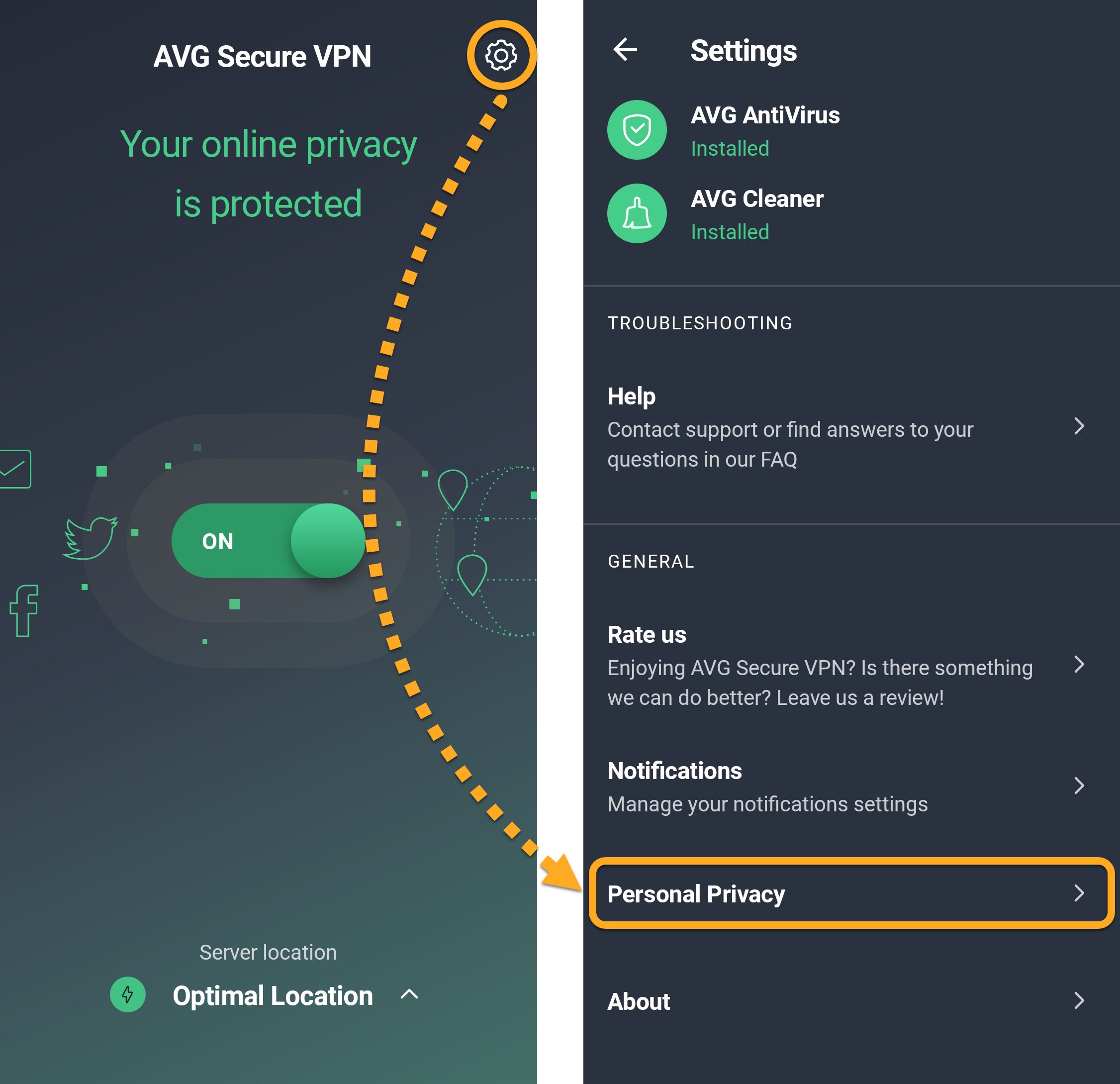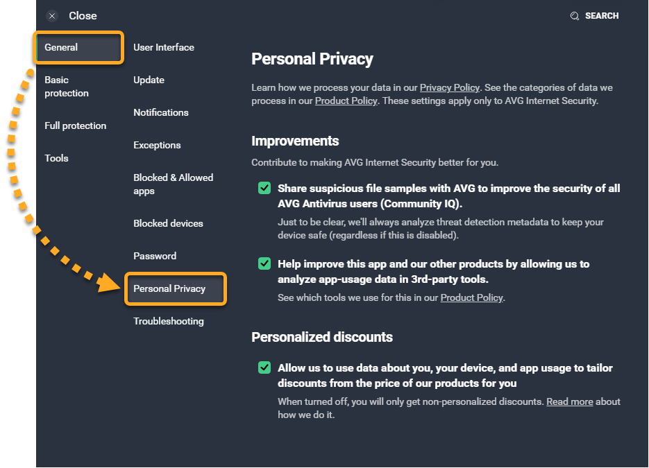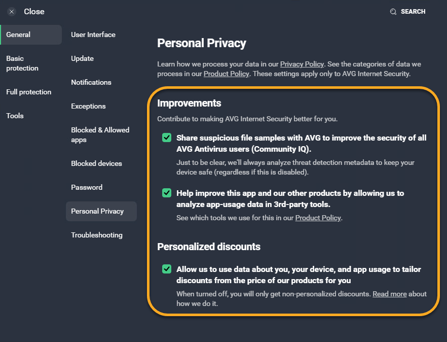 Your Personal Privacy settings are updated. For more details about data collection, refer to the AVG Privacy Policy.