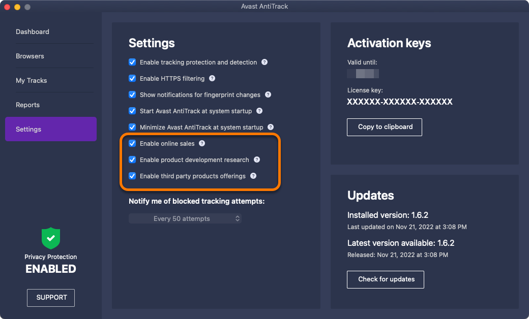 - Enable online sales: Share App Usage data with AVG, so we may offer you upgrades.