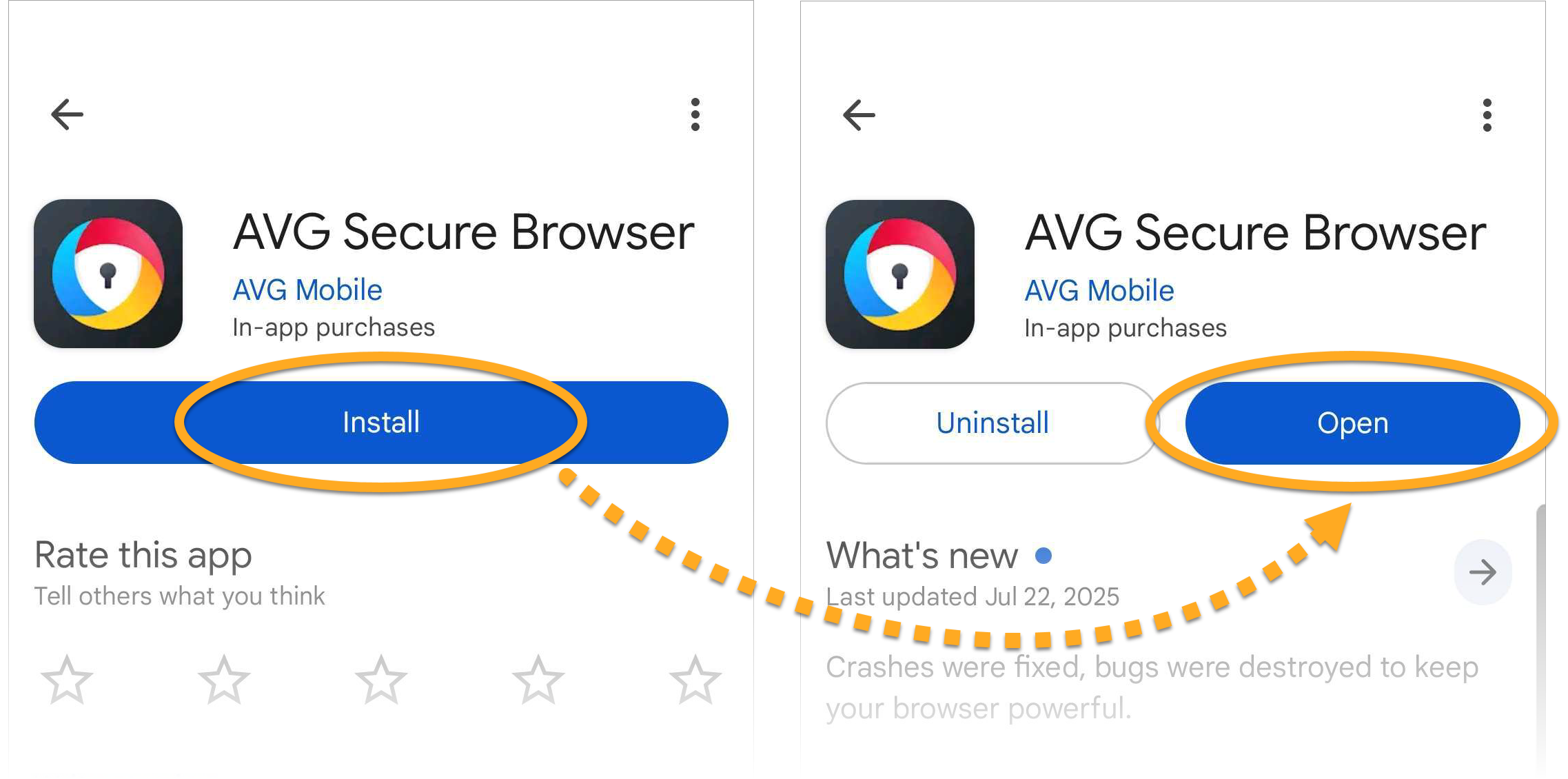 - On your Android device, tap the button below to open the AVG Secure Browser product page in Google Play Store.