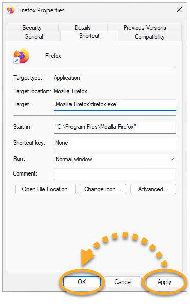 1. Right-click the web browser desktop shortcut and select Properties.