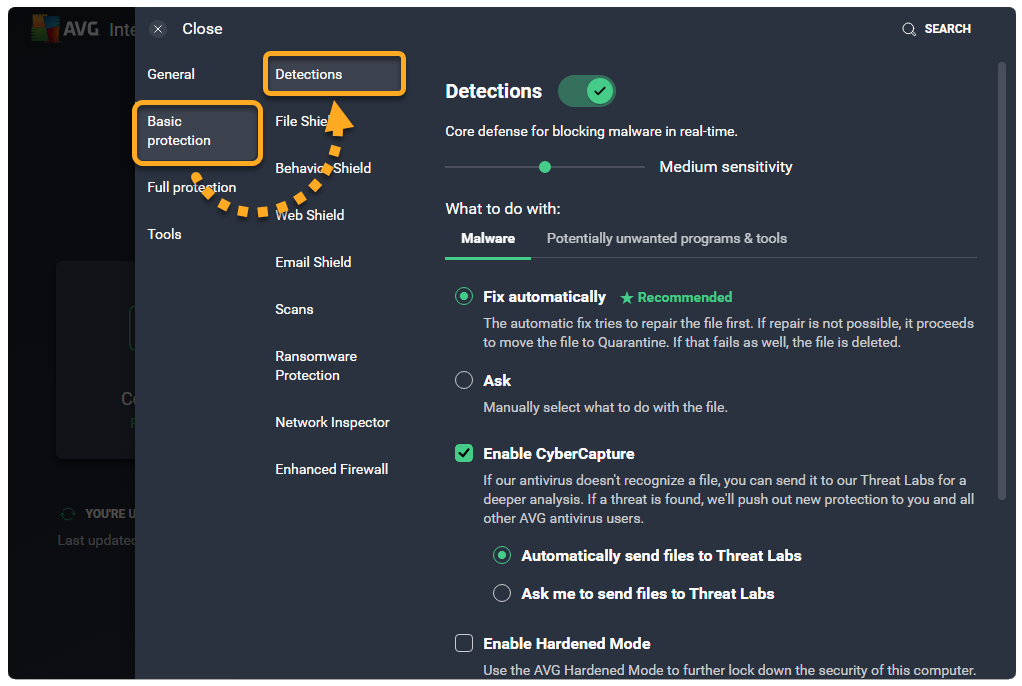 2. Select Basic ProtectionDetections.