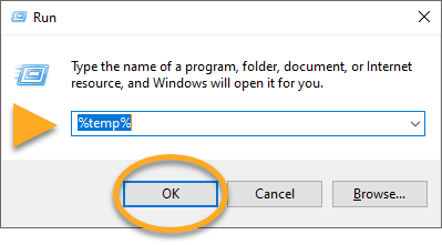 3. Type %temp% into the Run box that appears, then click OK.