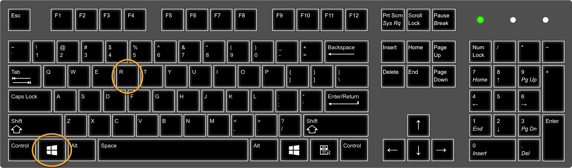 1. On your keyboard, press the Win key and R key simultaneously.