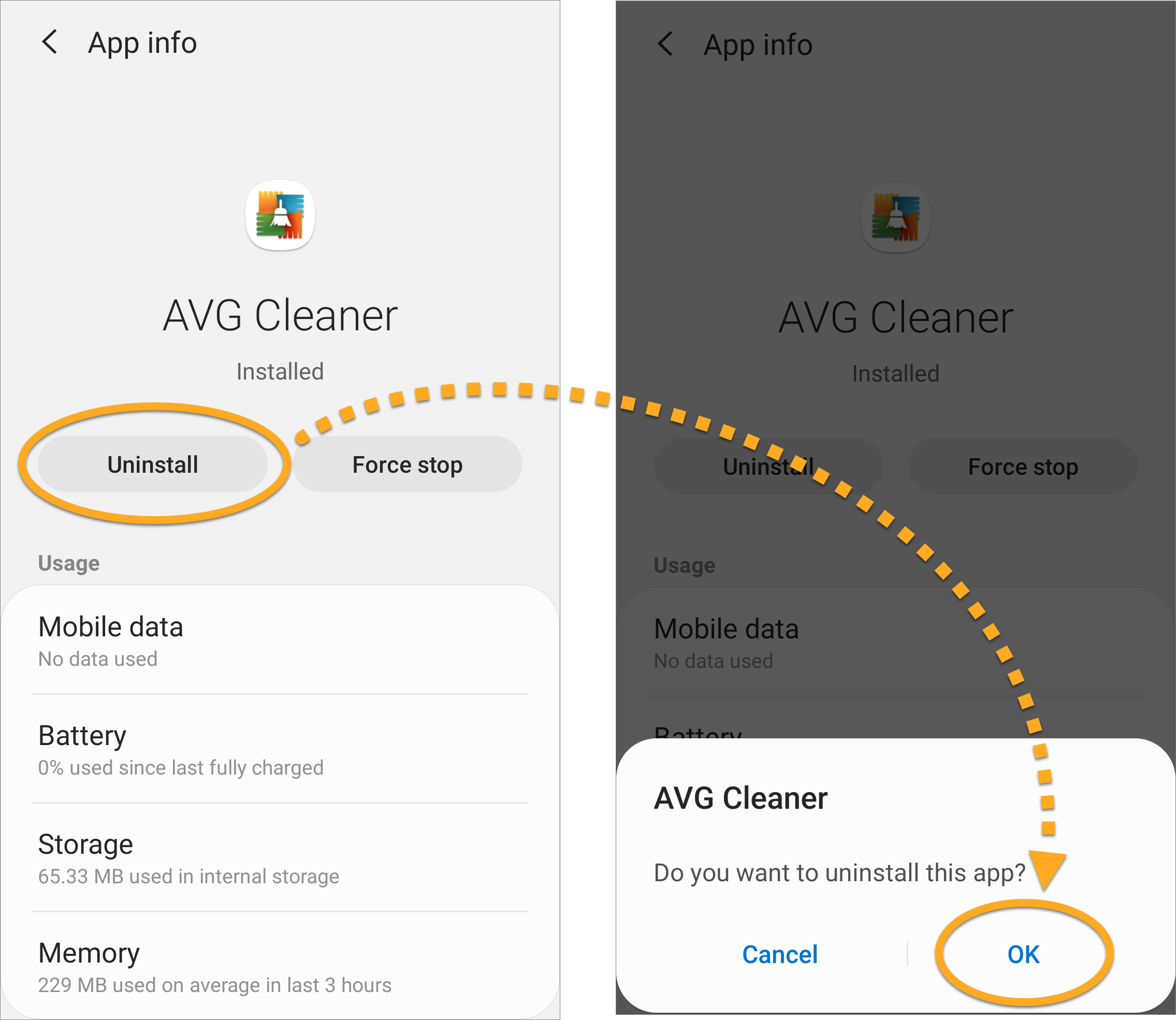 This article explains how to uninstall AVG Cleaner from your Android device. Refer to the instructions in the relevant section below according to your preferred method: