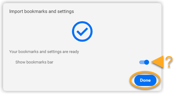 4. When the import is complete, click Done. Optionally, choose to show or hide the bookmarks bar.