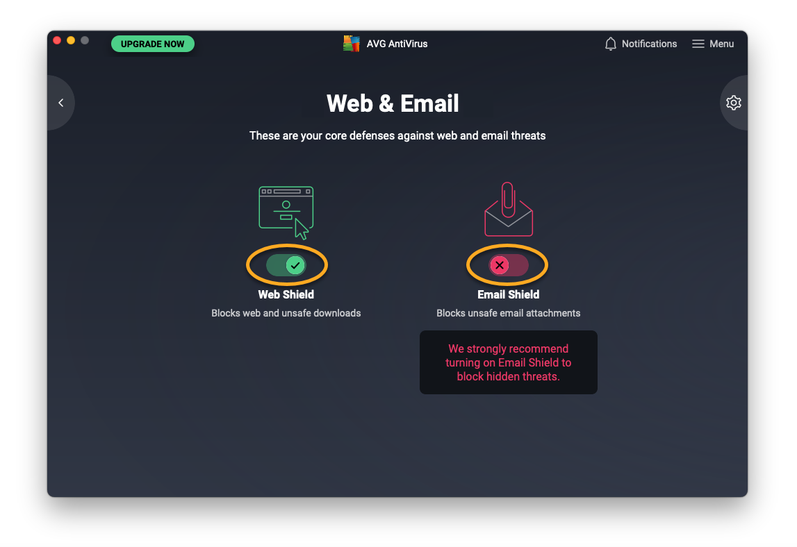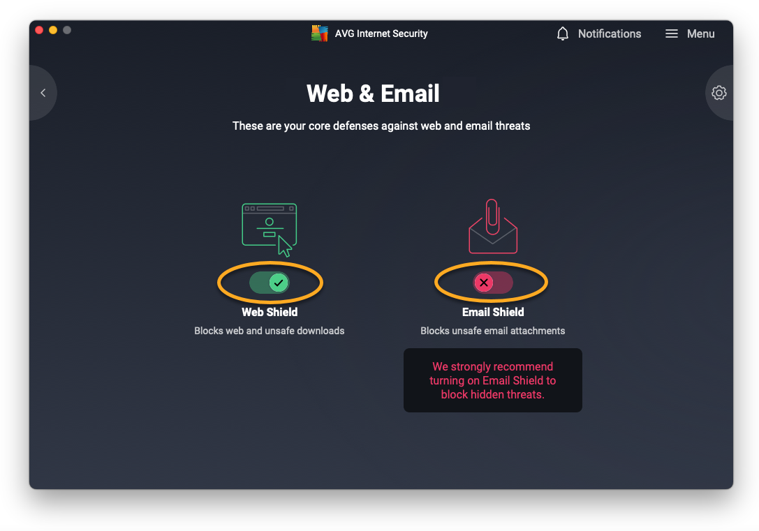 These core shields are enabled by default when you install AVG AntiVirus and allow all permissions. We strongly recommend keeping all shields enabled at all times to ensure maximum protection for your Mac.