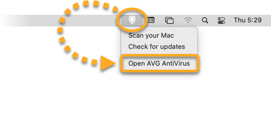 - Click the AVG AntiVirus icon in the Apple menu bar and select Open AVG AntiVirus.