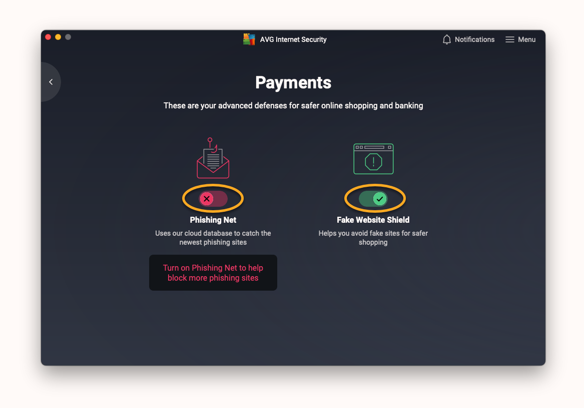 AVG Internet Security includes two additional features to protect you when shopping or banking online: