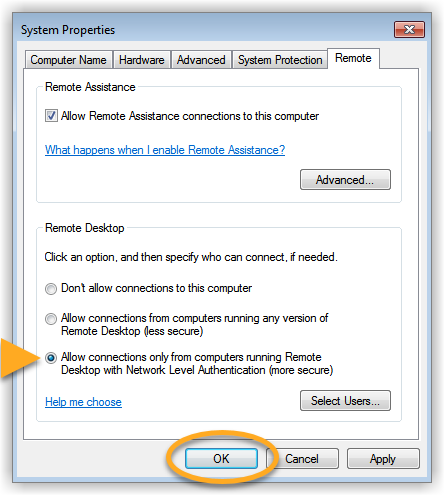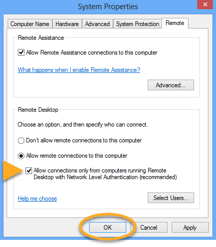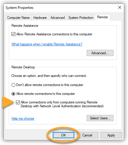 Follow the steps below to enable Network Level Authentication on your PC: