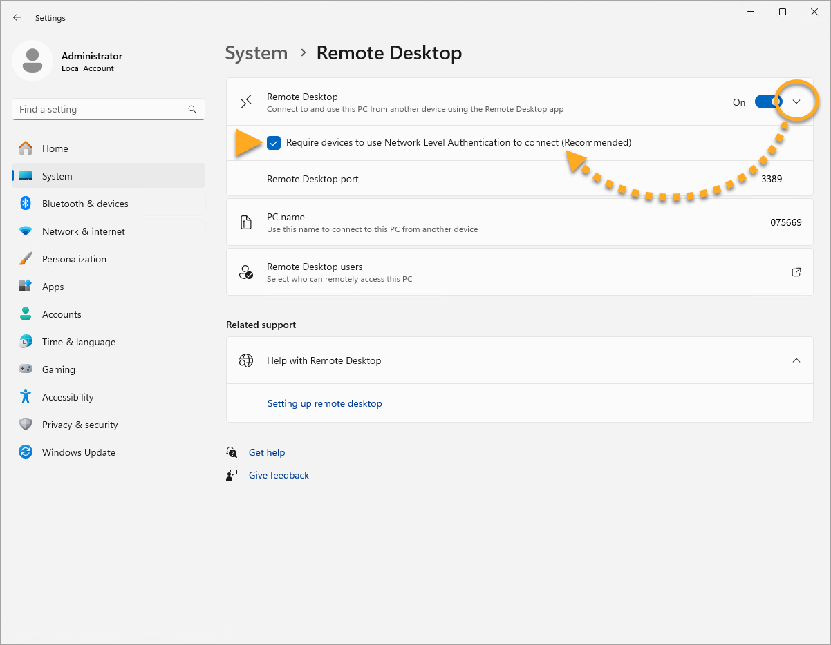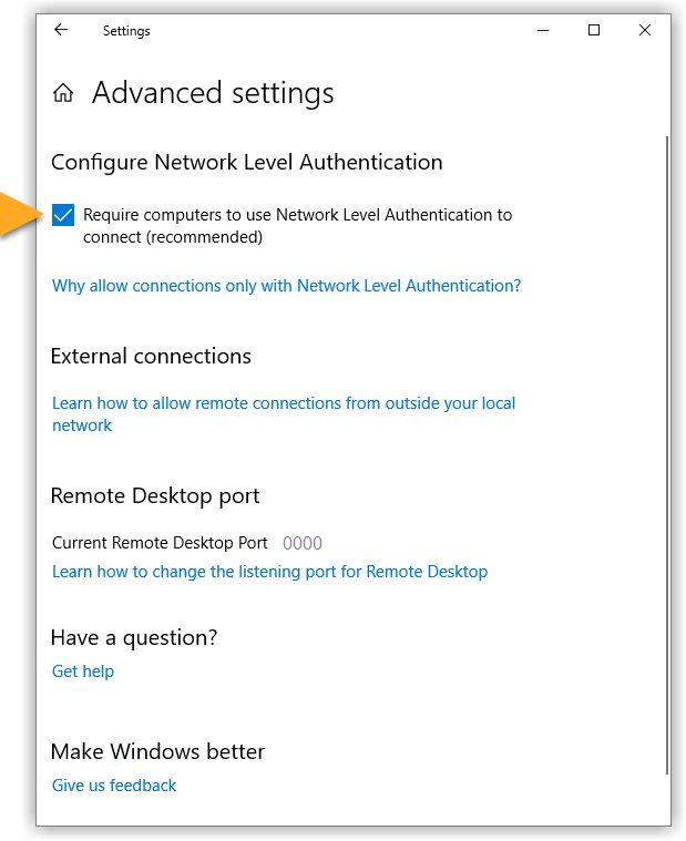 While this action addresses the immediate threat, it does not completely resolve the issue. The Network Inspector will continue to issue warnings unless you also enable Network Level Authentication, as explained below. You can resolve this issue by enabling Network Level Authentication on your PC. This ensures that any connection attempts must be authenticated before they can establish a session with the server.