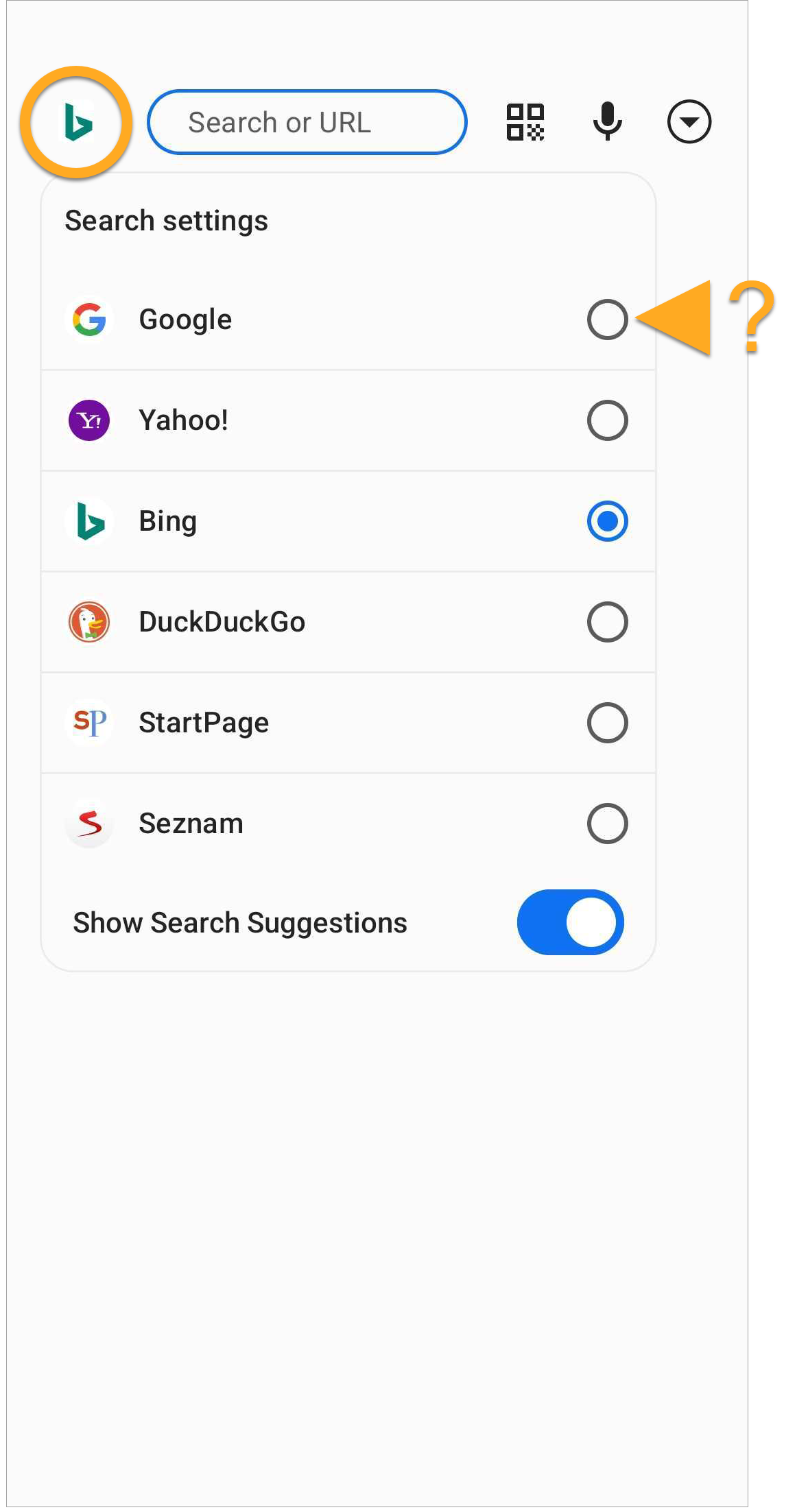 - Tap the search engine icon in the top-left corner of the screen, then choose your preferred search engine.