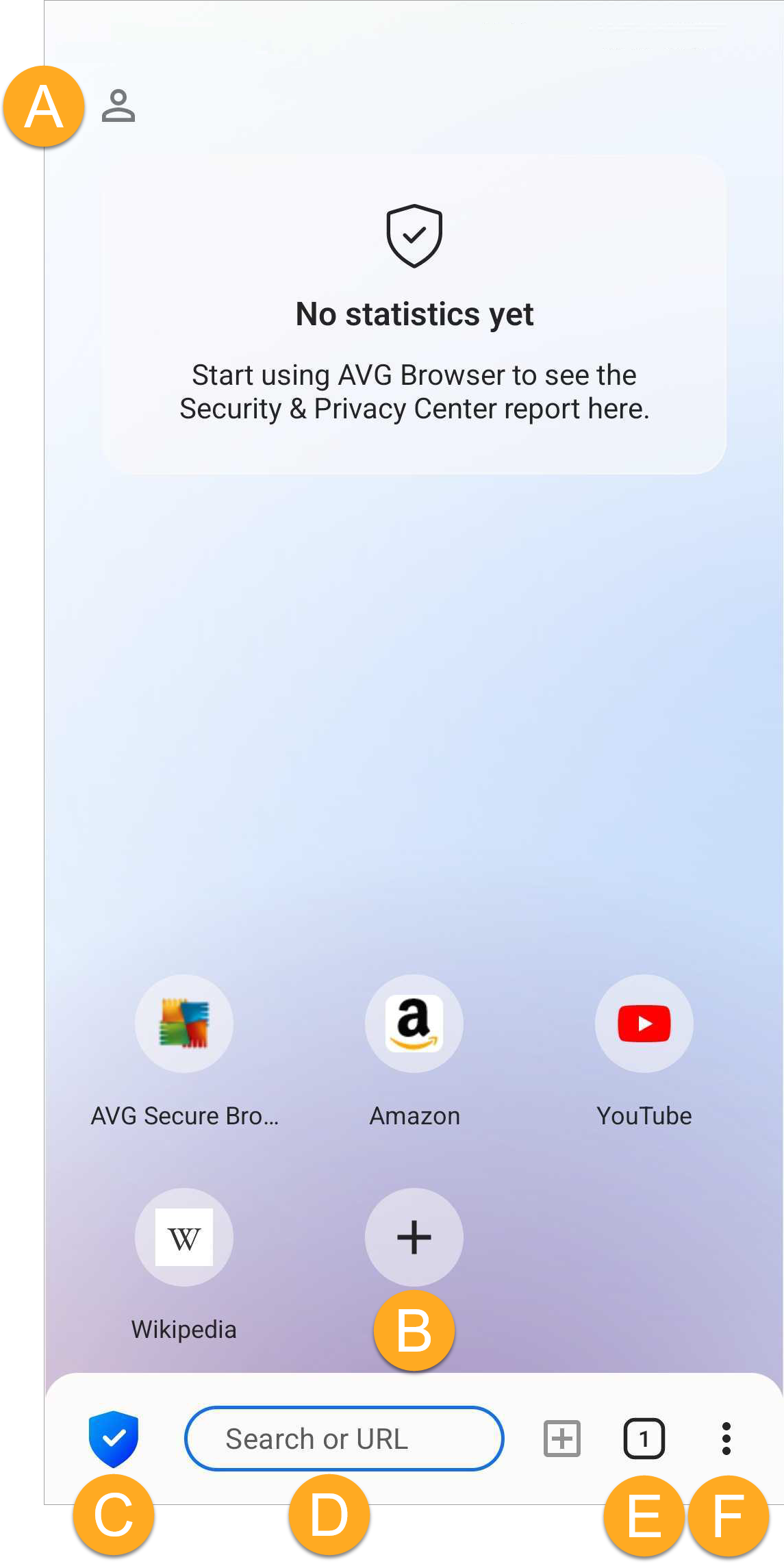 - On your mobile device, tap the AVG Secure Browser icon. The app opens to the main browser screen.