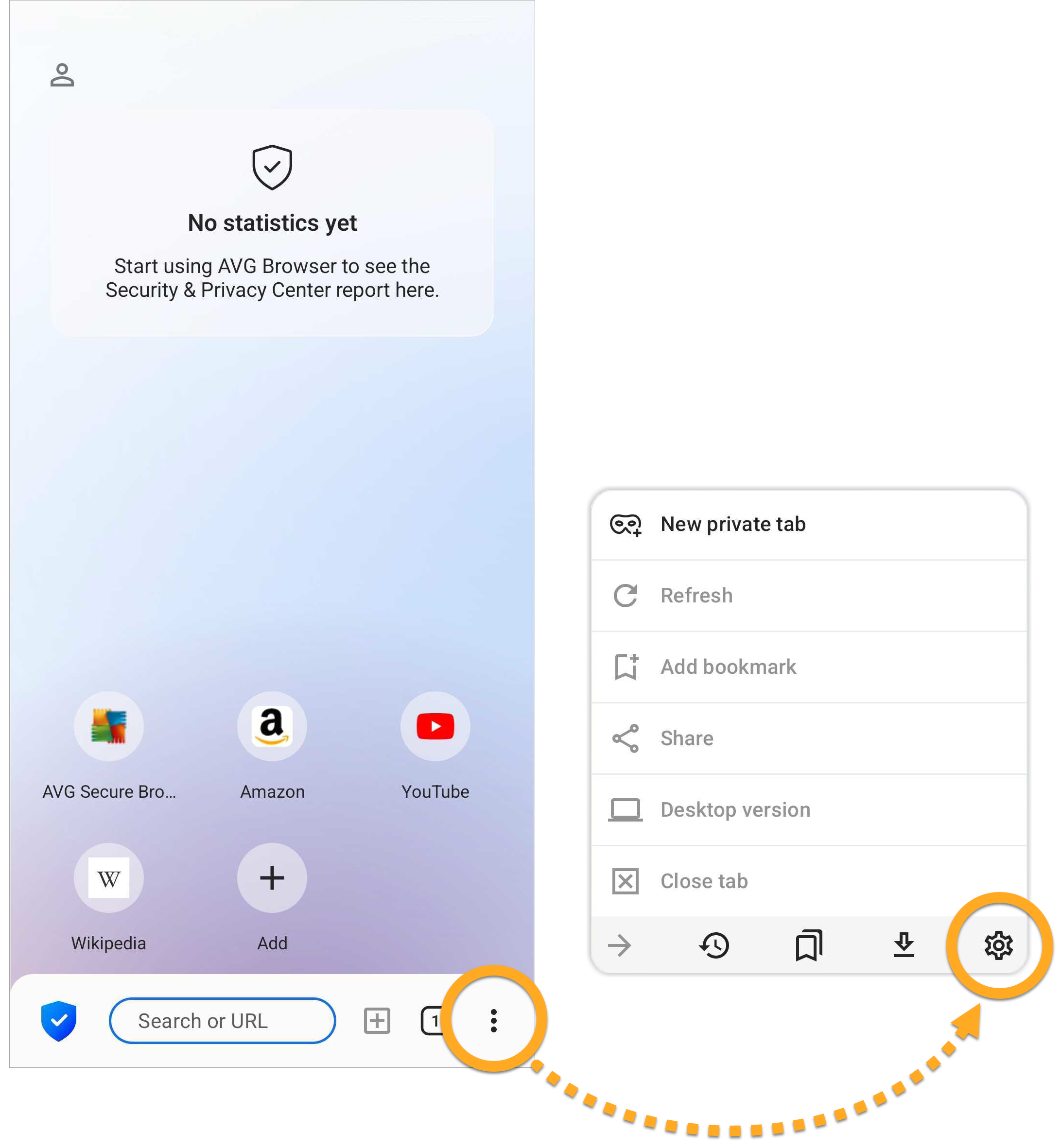 - Open AVG Secure Browser, then tap