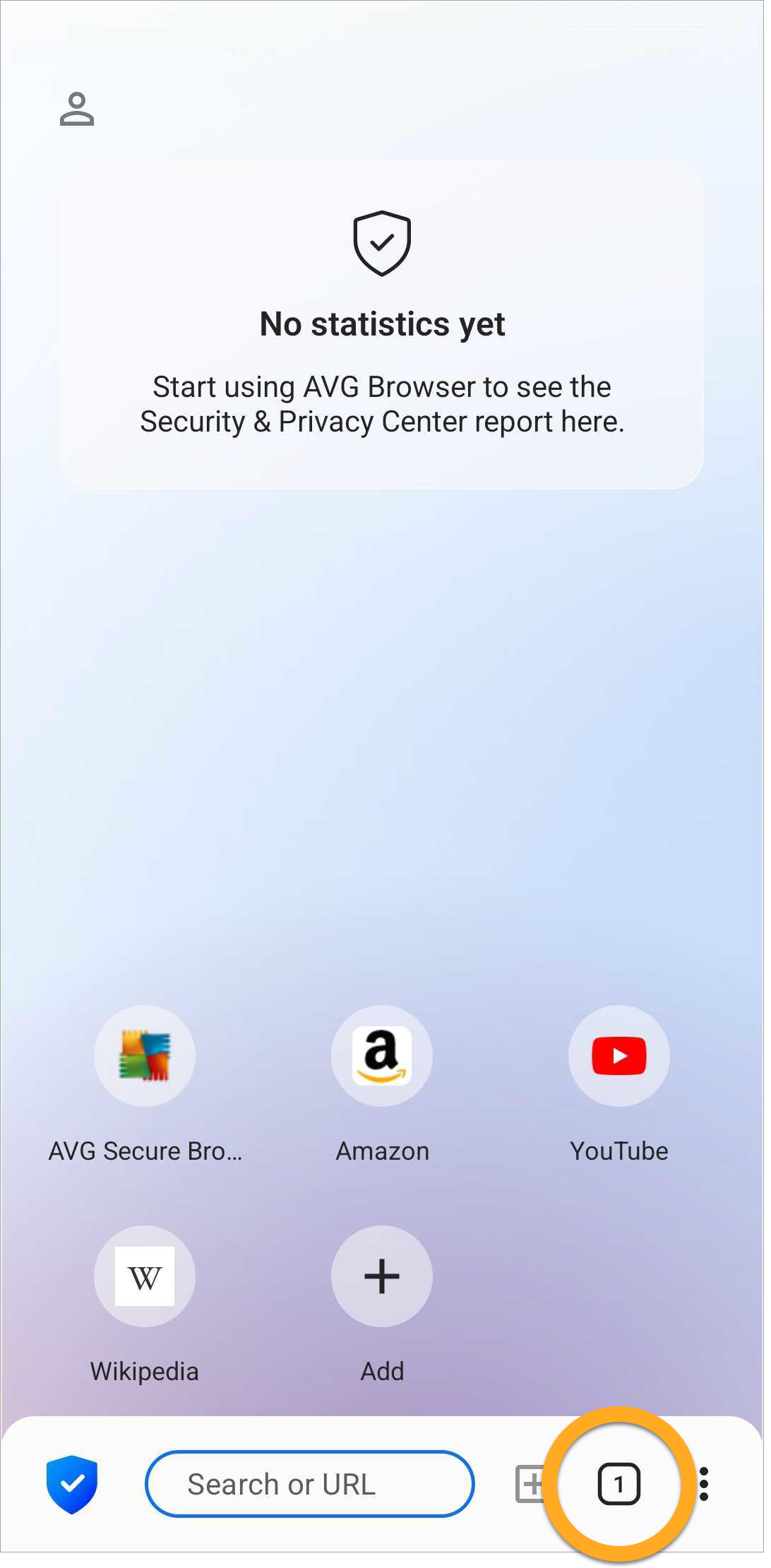 - Open AVG Secure Browser, then tap the square tabs icon at the bottom of the screen.