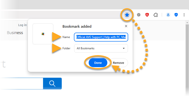 - Open AVG Secure Browser and navigate to the webpage that you want to bookmark.