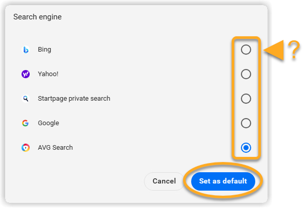 - Select your preferred search engine, then click Set as default.