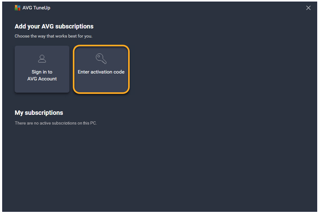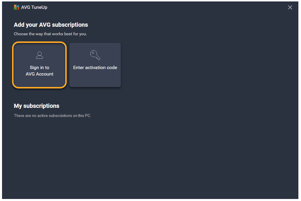 AVG TuneUp para Windows es una aplicación de pago que requiere una suscripción para su uso. Después de instalar AVG TuneUp, es posible que deba activar manualmente la aplicación con un código de activación válido o su Cuenta AVG.