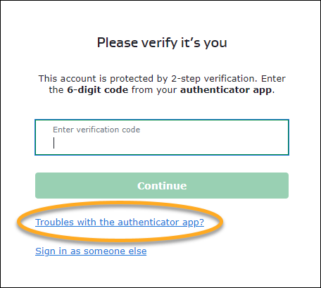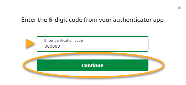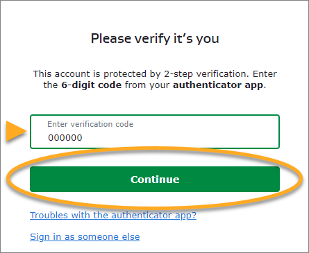 - En la pantalla de inicio de sesión de su Cuenta AVG, introduzca el código de seis dígitos de la aplicación, después haga clic en Continuar.