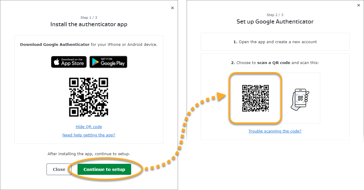 - Descargue e instale la aplicación Google Authenticator en su dispositivo Android o iOS. Siga estos pasos: