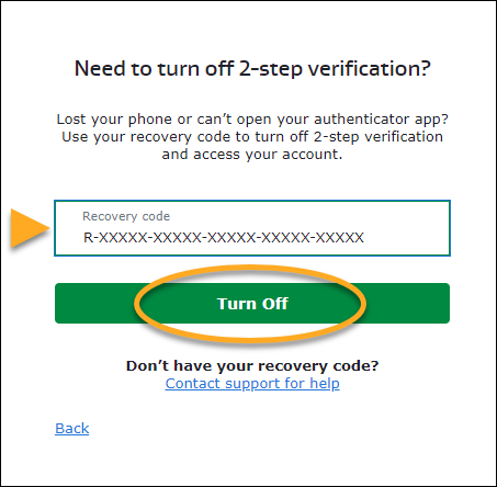 Puede usar el código de recuperación para desactivar la verificación de dos factores e iniciar sesión en su Cuenta AVG si no puede acceder a la aplicación Google Authenticator.