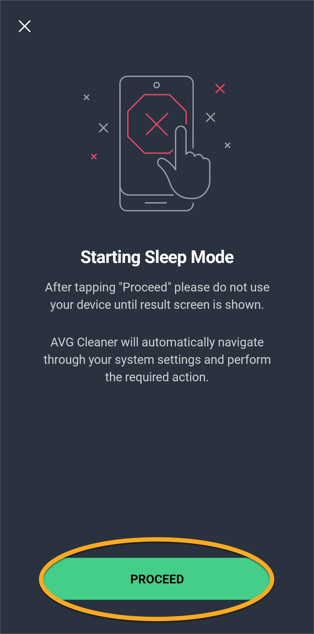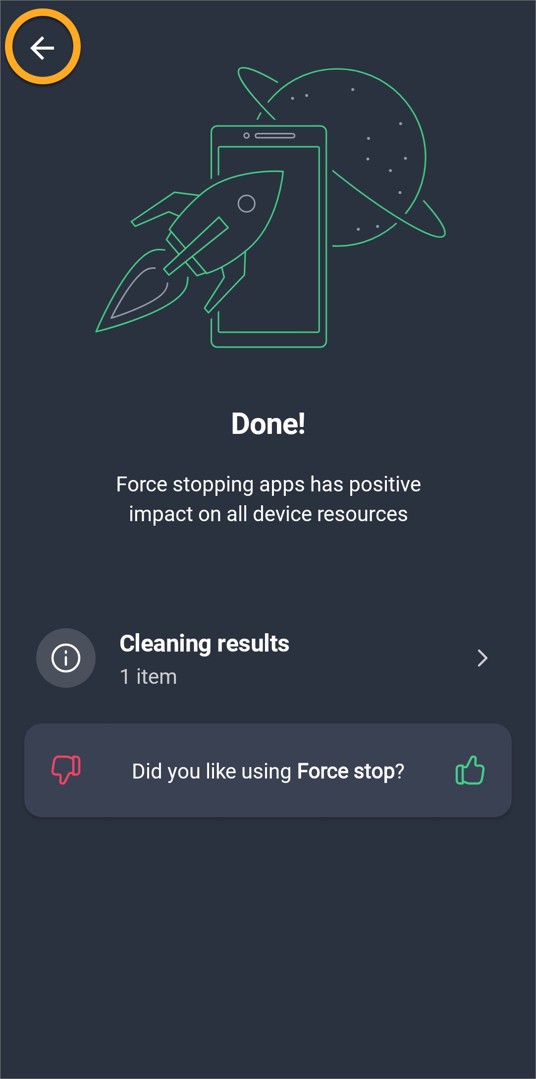 - Espere mientras AVG Cleaner pone en hibernación las aplicaciones seleccionadas y toque la flecha hacia atrás para volver a la pantalla principal de AVG Cleaner.