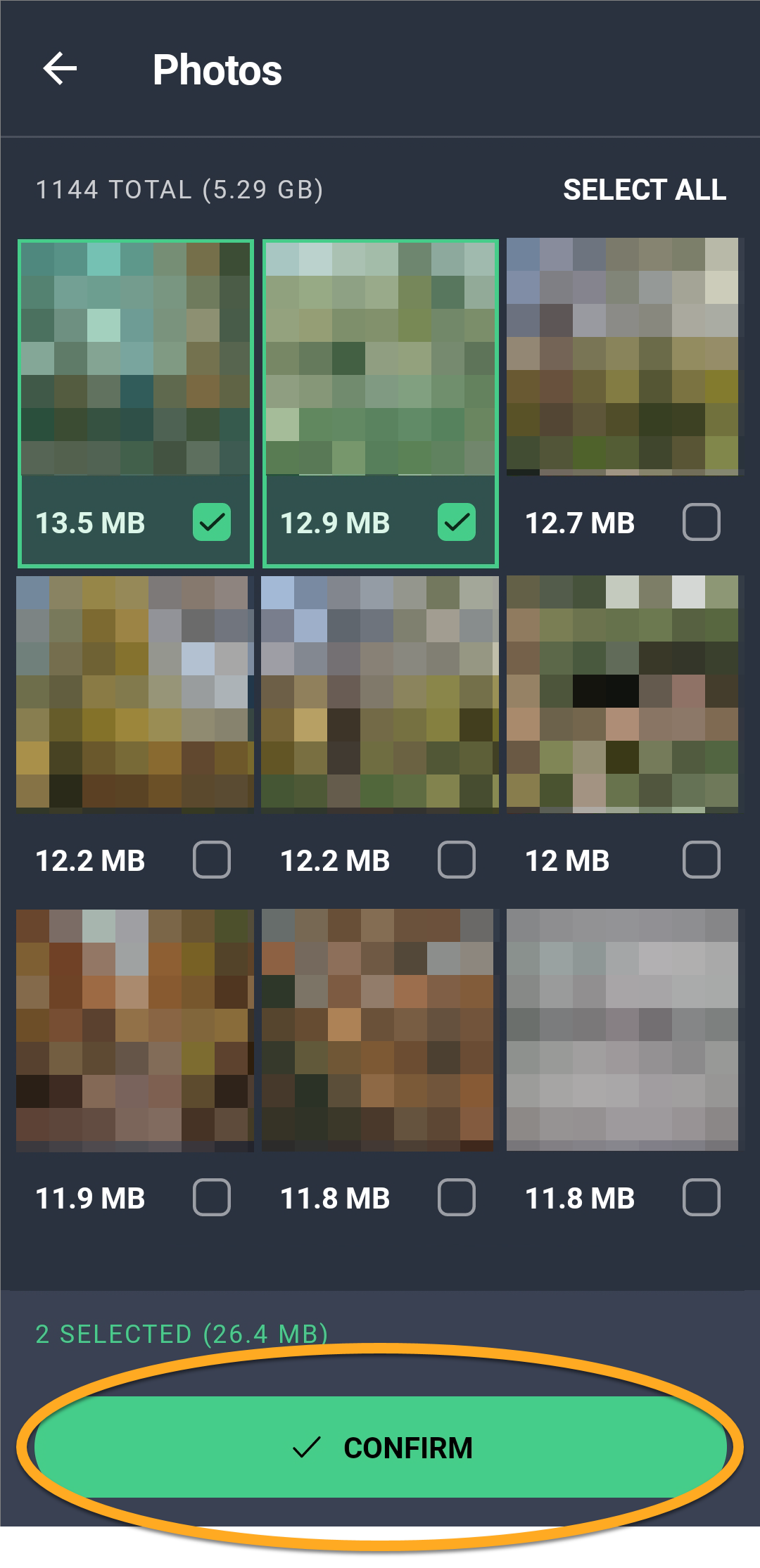 AVG Cleaner le permite optimizar las imágenes para que ocupen menos espacio. Las imágenes que ya tienen el mismo tamaño que la pantalla de su dispositivo, por ejemplo, las capturas de pantalla, no se pueden optimizar. Para optimizar sus fotos: