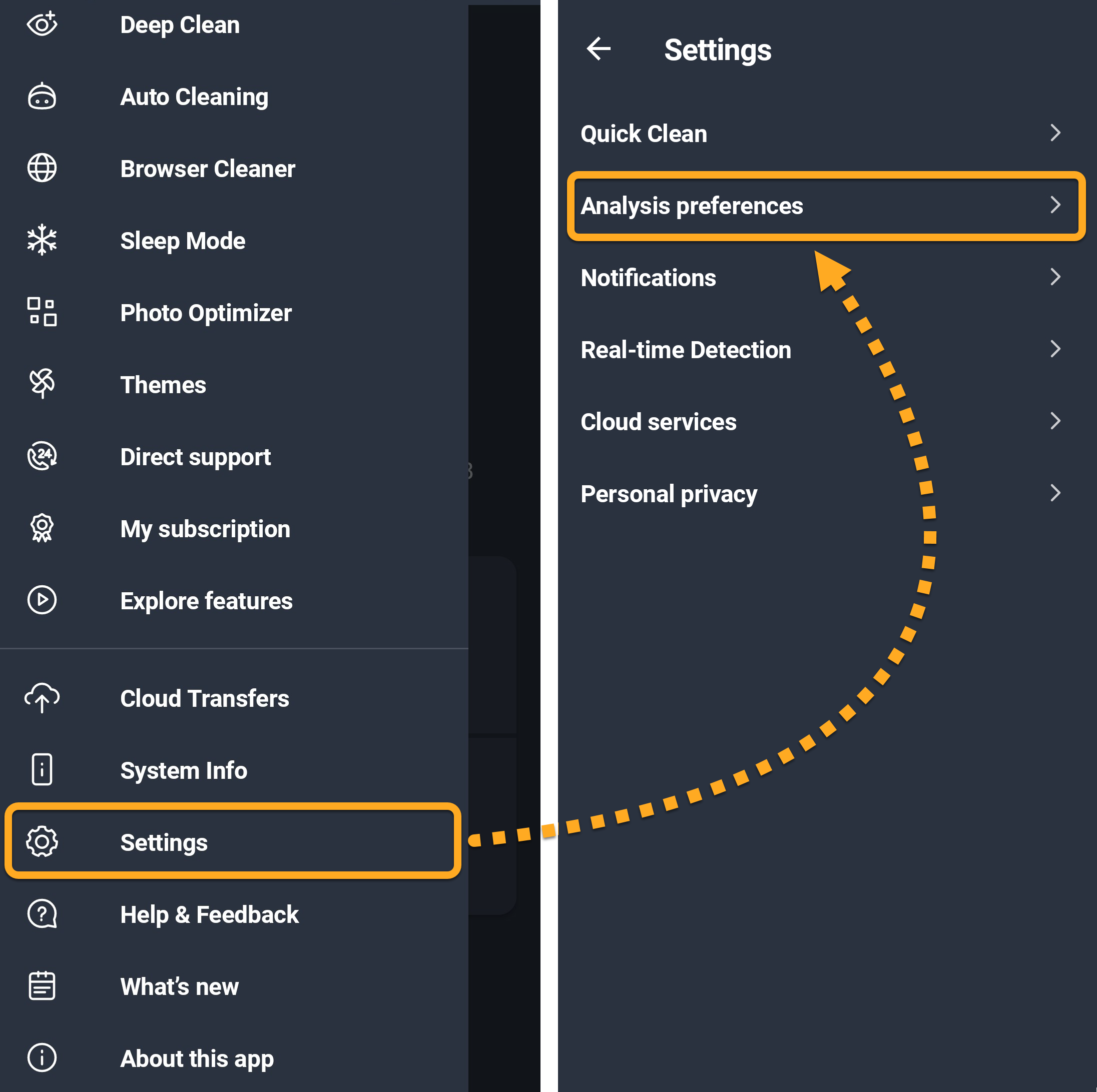 - Vaya a Configuración ▸ Preferencias de análisis.