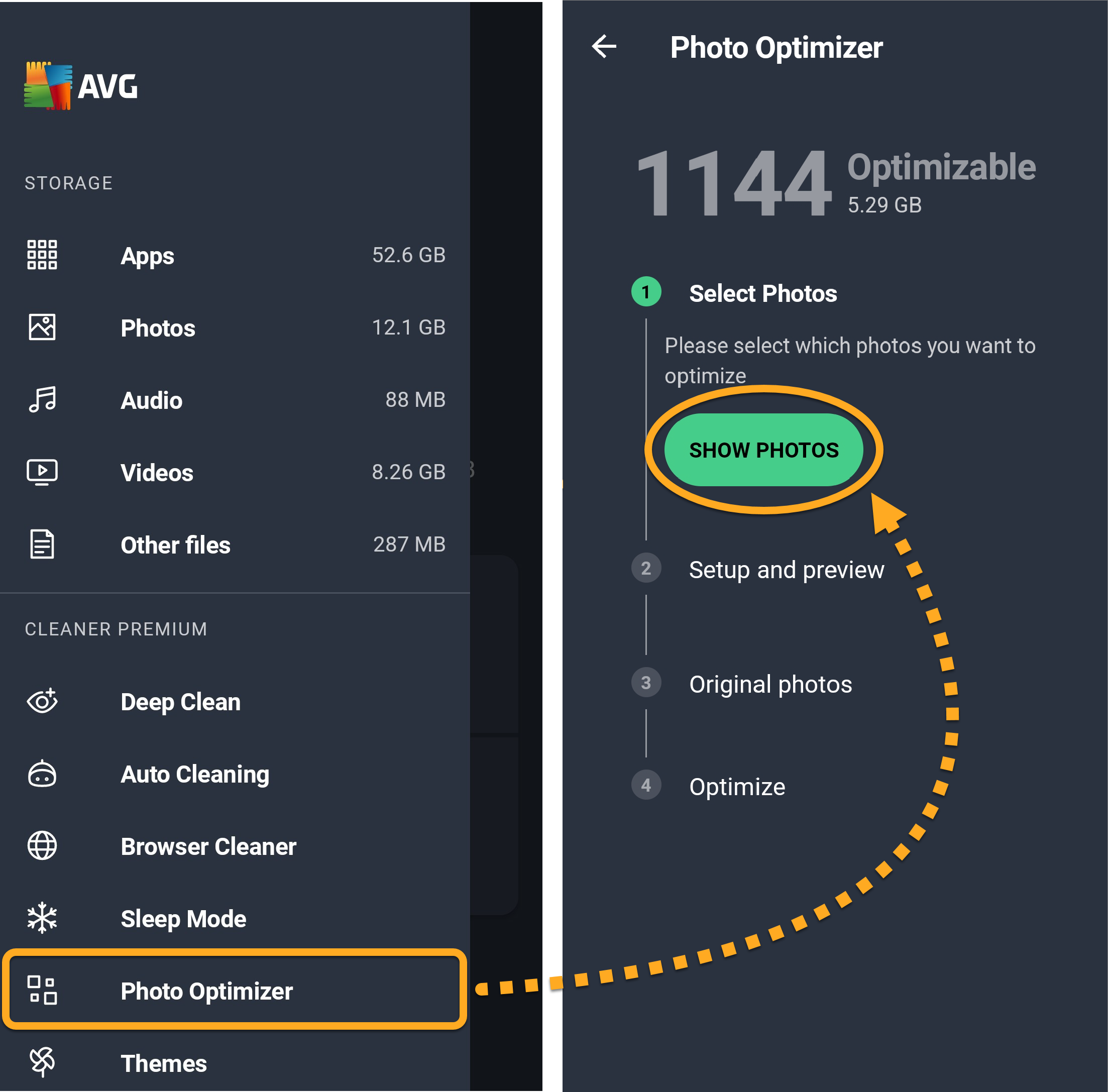 - Vaya a Optimizador de fotos ▸ Mostrar fotos.