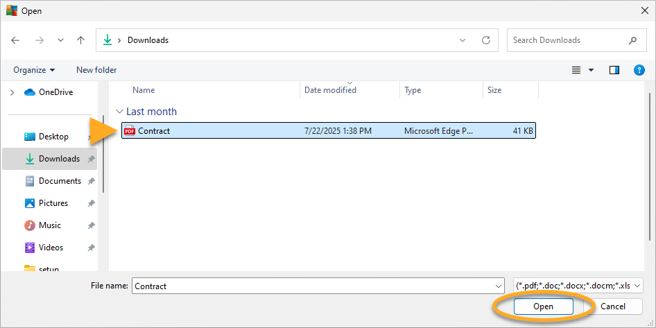 - Selecciona el documento que deseas proteger y haz clic en Abrir.