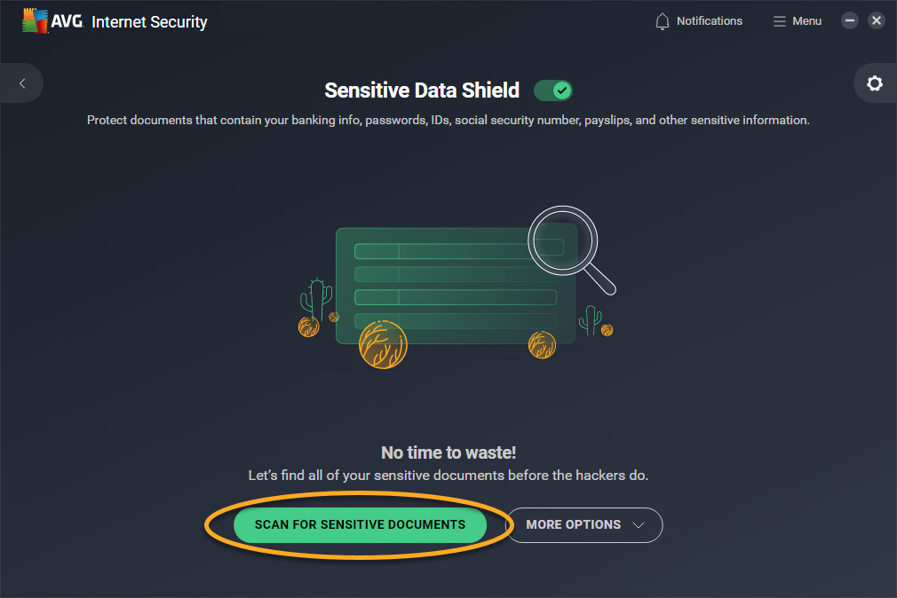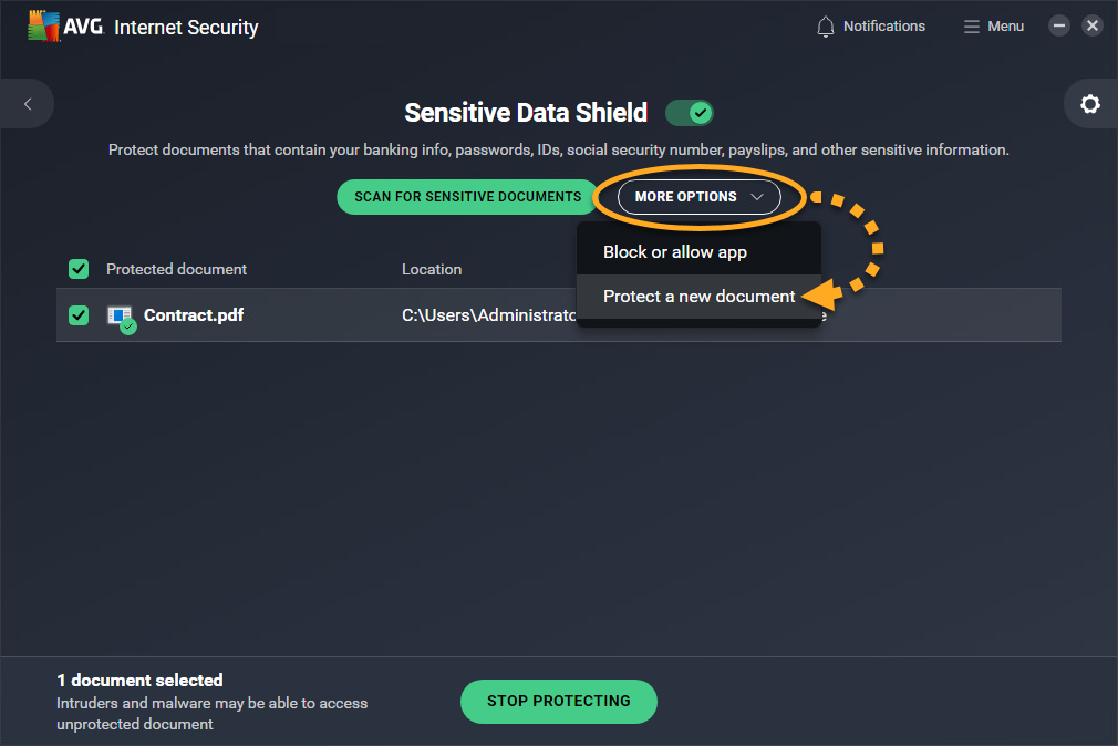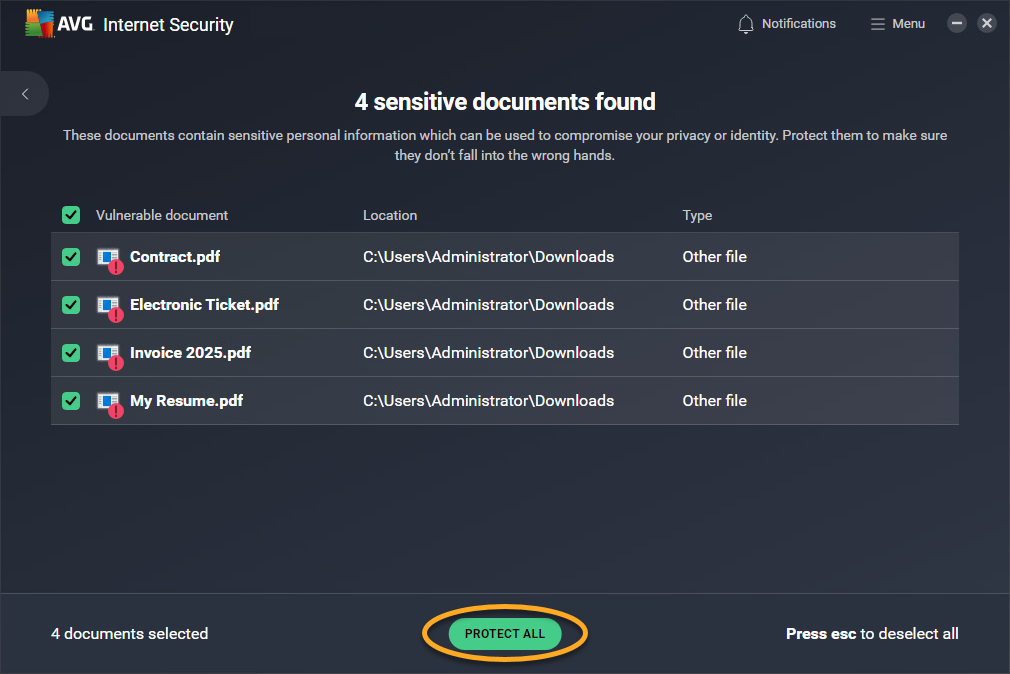 Haz un análisis de tu dispositivo Windows para identificar los documentos que contienen datos personales y que no están protegidos por AVG.