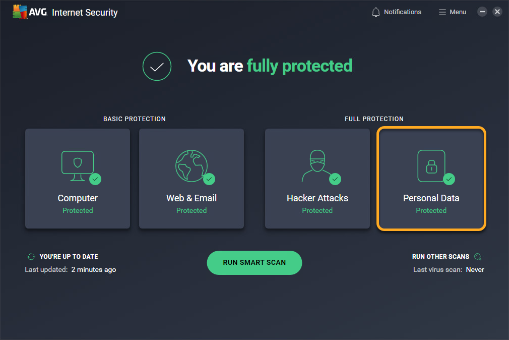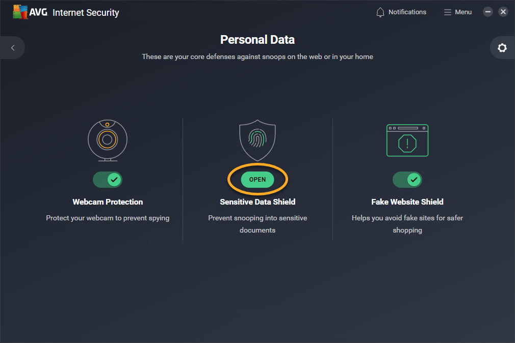 - Abre AVG Internet Security y haz clic en el mosaico Datos personales.